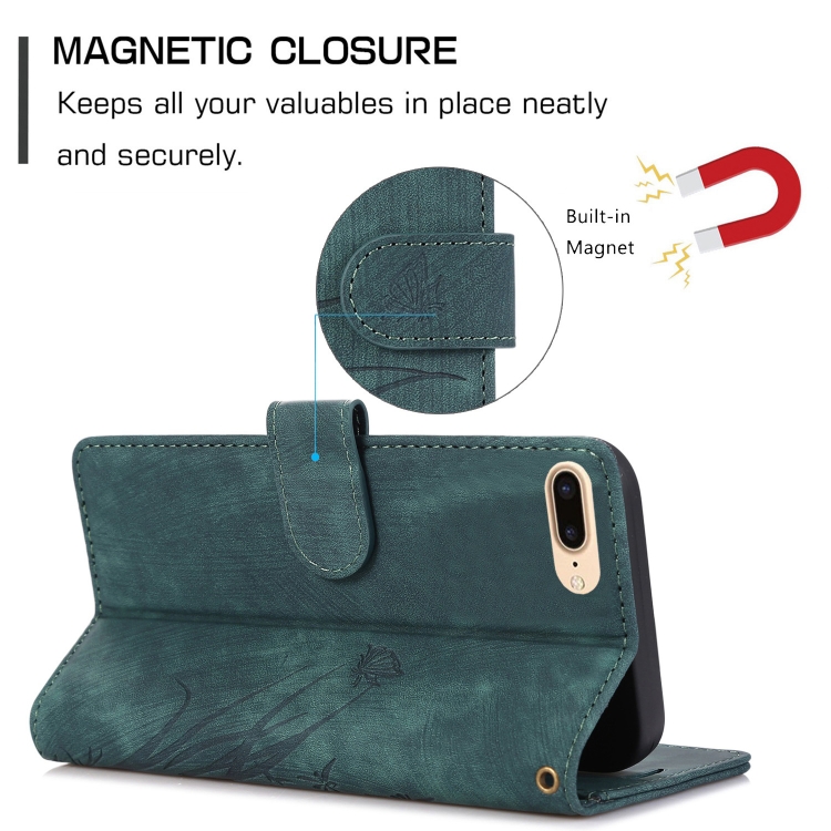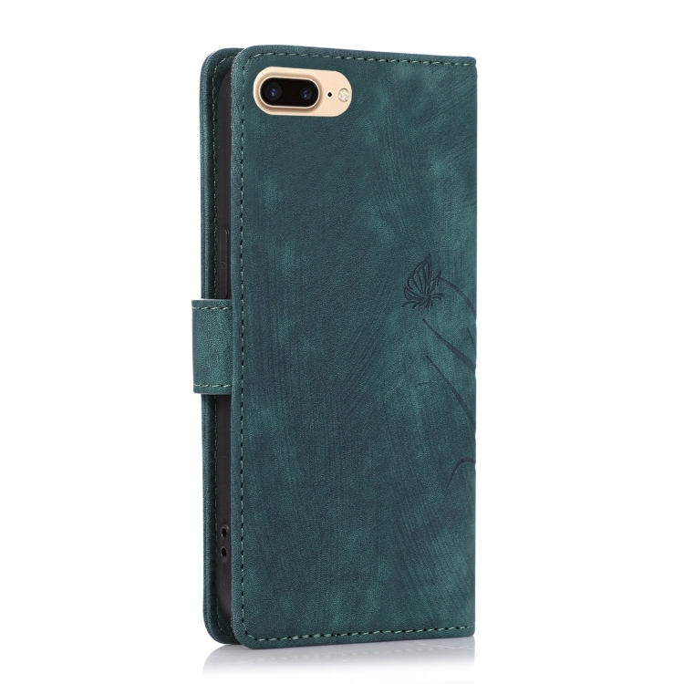 Funda para Teléfono iPhone 7 Plus/8 Plus Cuero Relieve Mariposa Orquídea (Verde)
