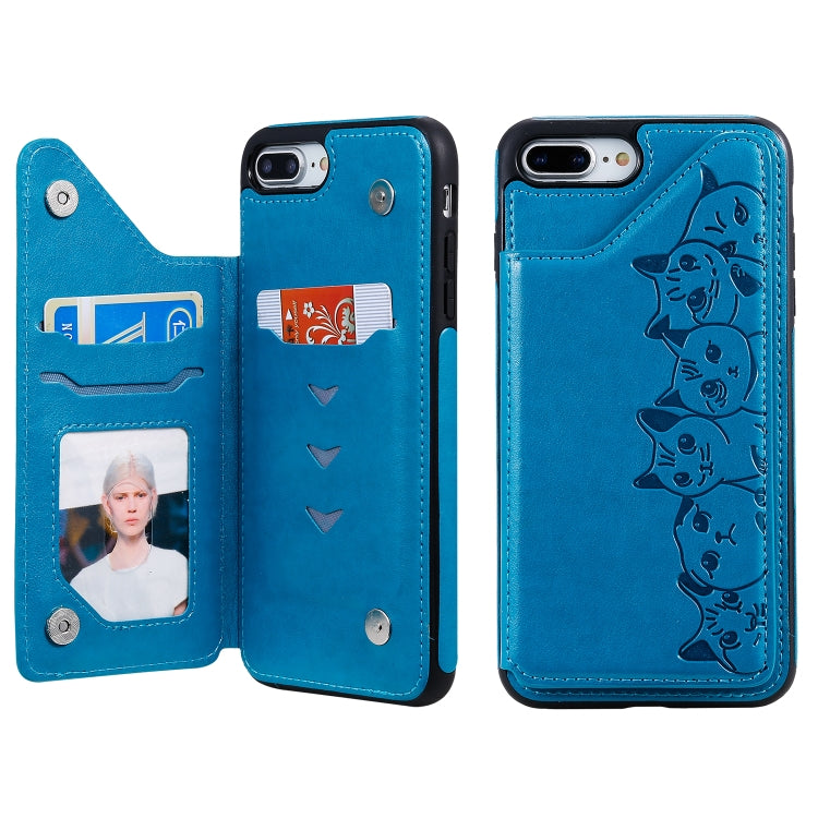 Funda Protectora para iPhone 7 Plus / 8 Plus Six Cats con Patrón En Relieve, Soporte, Ranuras para Tarjetas y Marco de Fotos (Azul)