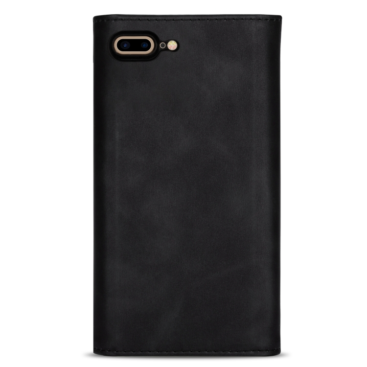 Funda de Cuero Skin Feel para iPhone 7 Plus / 8 Plus con Tapa Horizontal, Soporte, Ranuras para Tarjetas, Marco de Fotos y Cordón (Negro)