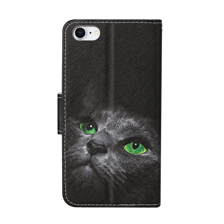 Estuche de Cuero Abatible Horizontal para iPhone 8/7 con Soporte, Ranuras para Tarjetas y Billetera (Gato Negro)