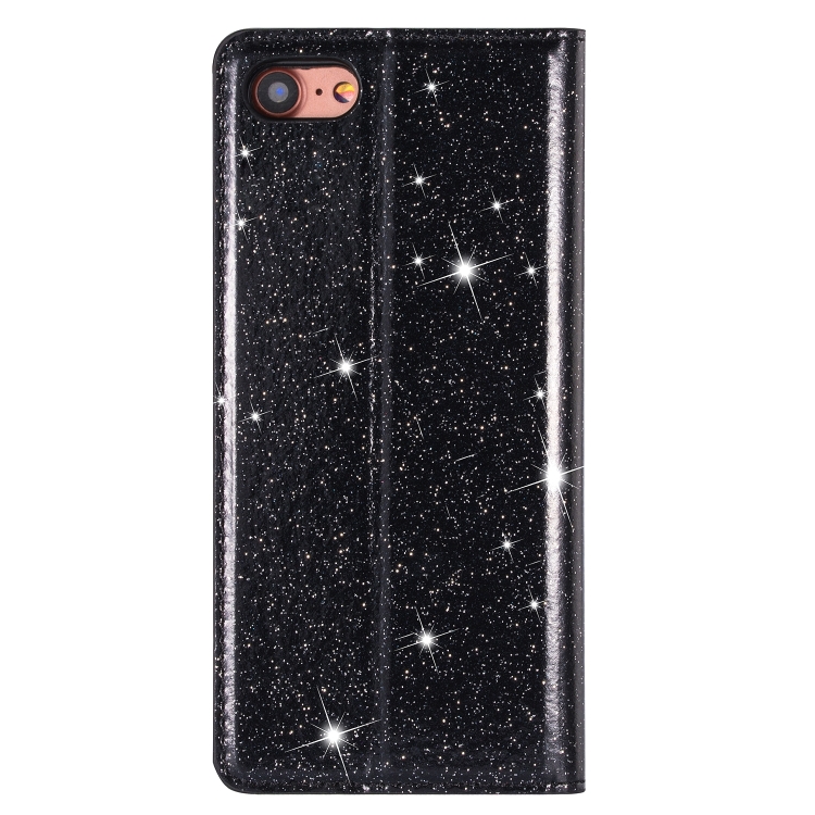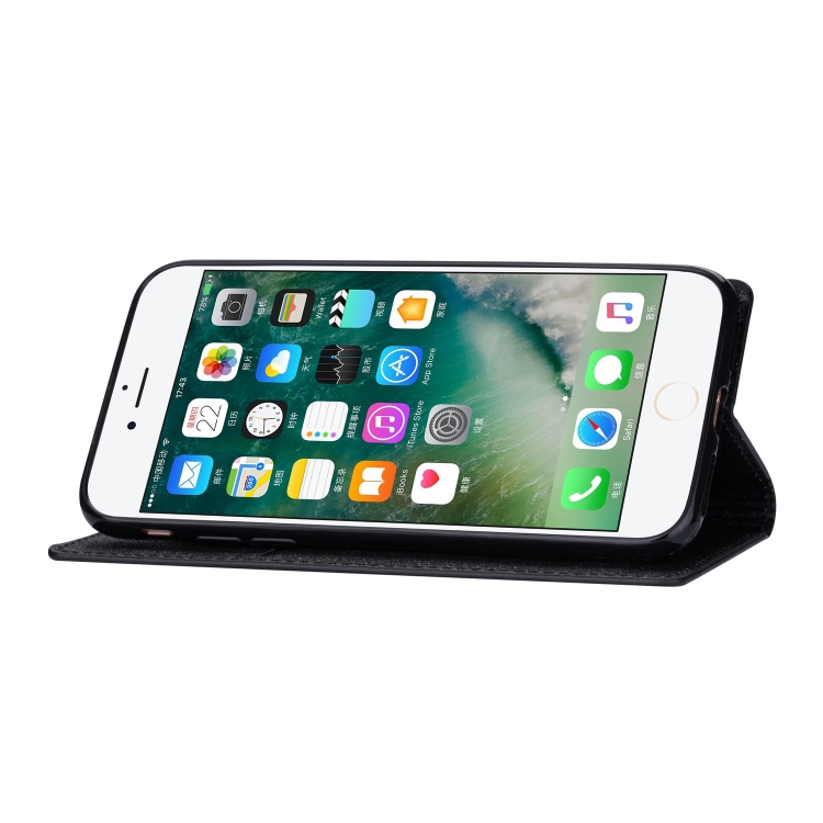 Estuche de Cuero para iPhone 8/7 Abatible Horizontal Magnético Ultradelgado con Brillo Soporte y Ranuras para Tarjetas (Negro)