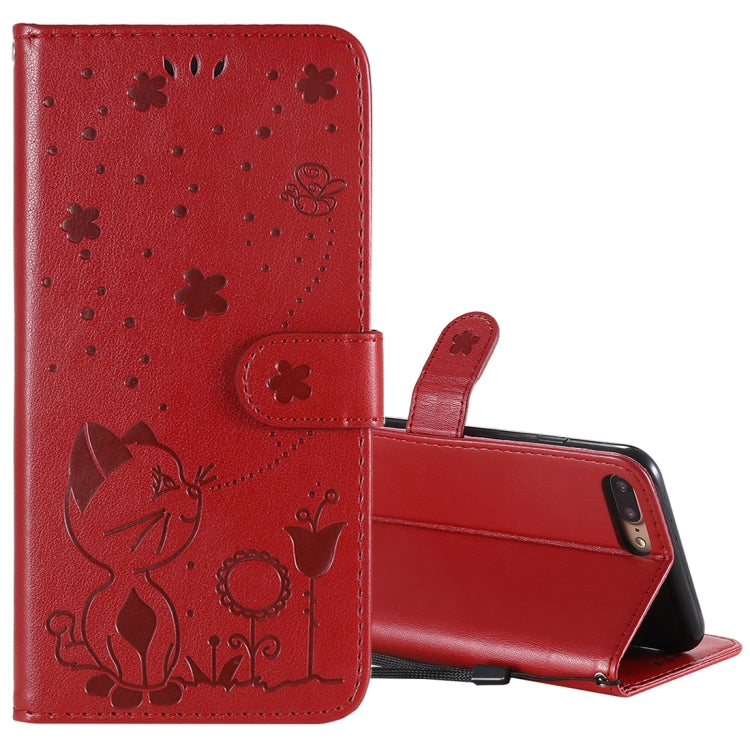 Funda de Cuero Cat Bee para iPhone 8 Plus y 7 Plus con Tapa Horizontal, Soporte, Ranuras para Tarjetas y Billetera (Rojo)