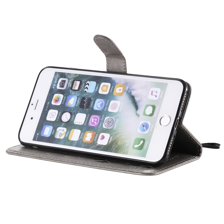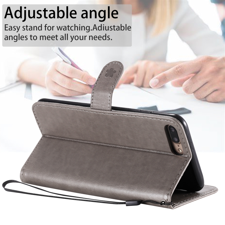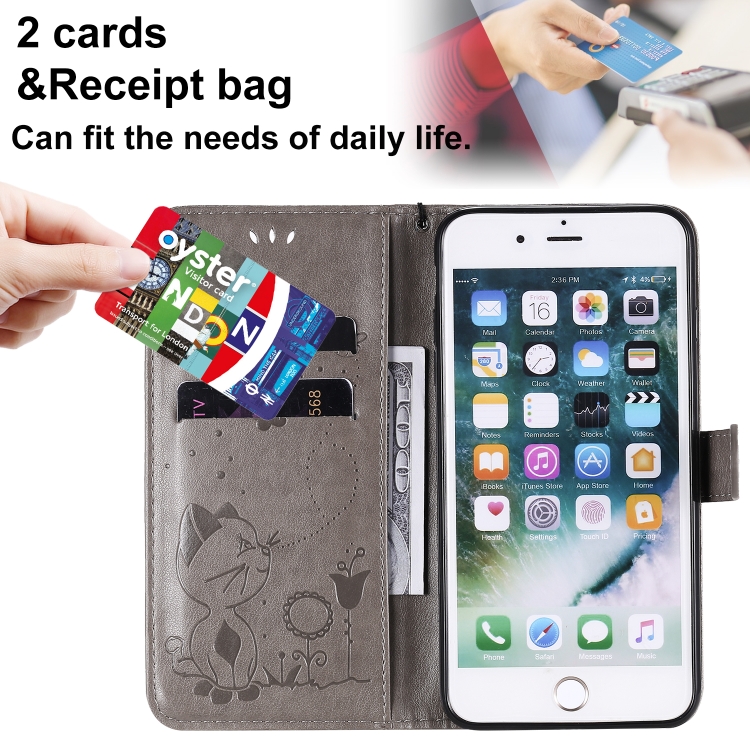 Funda de Cuero Cat Bee para iPhone 8 Plus y 7 Plus con Tapa Horizontal, Soporte, Ranuras para Tarjetas y Billetera (Gris)