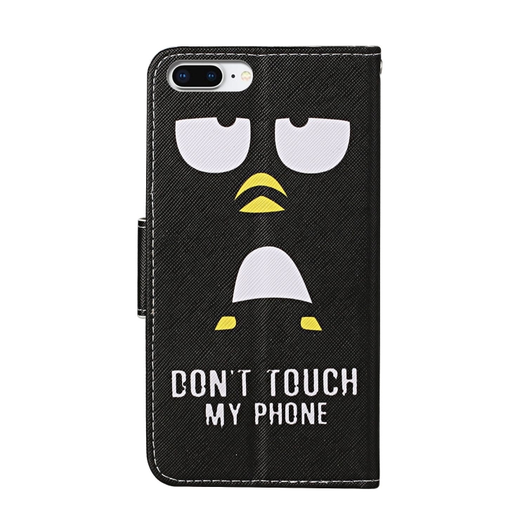 Estuche de Cuero Abatible Horizontal para iPhone 8 Plus y 7 Plus con Patrón de Dibujo Coloreado, Soporte, Ranuras para Tarjetas y Billetera (Penguin)