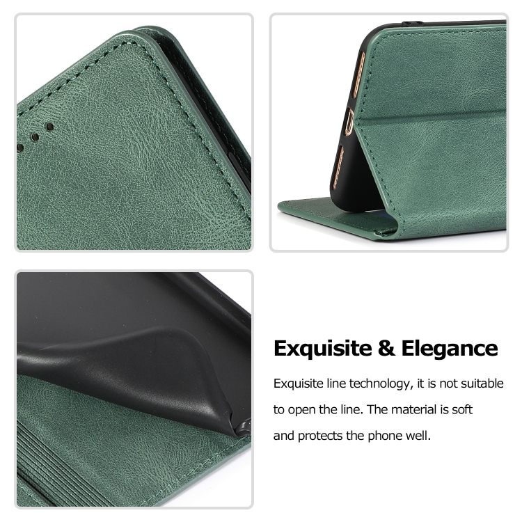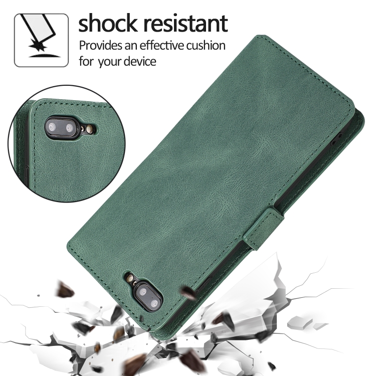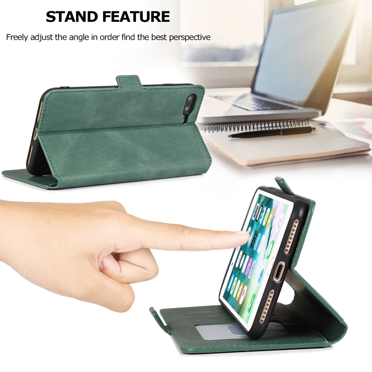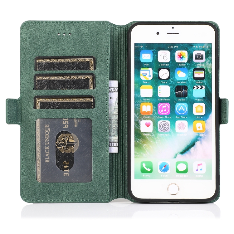 Estuche de Cuero para iPhone 8 Plus y 7 Plus con Cierre Magnético Horizontal Soporte Ranuras Tarjetas Marco Fotos Billetera (Verde)
