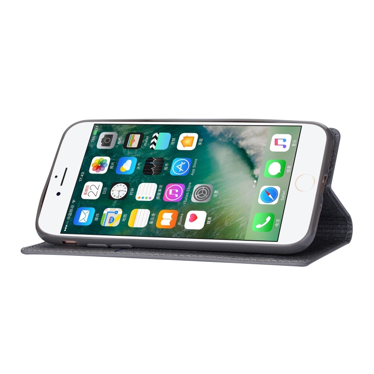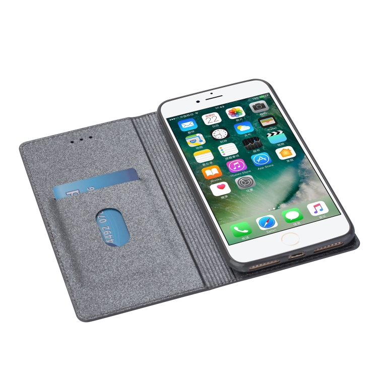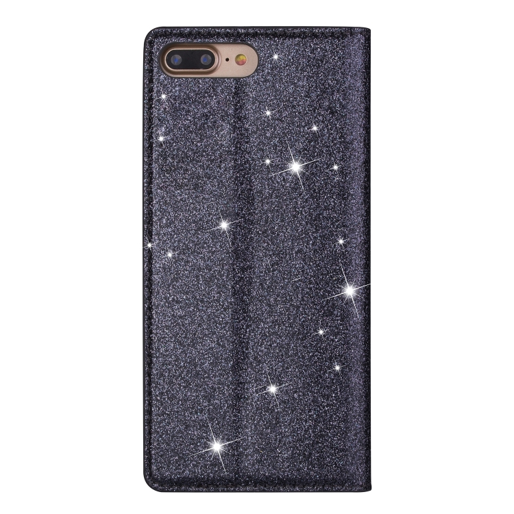 Estuche de Cuero para iPhone 8 Plus y 7 Plus con Tapa Horizontal Magnética Ultradelgada con Purpurina y Soporte (Gris)