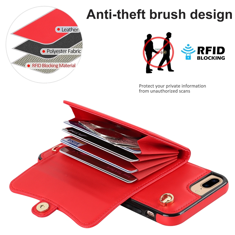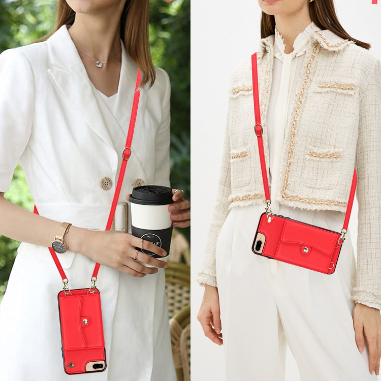 Estuche para Teléfono iPhone 8 Plus 7 Plus con Ranura para Tarjeta Rfid y Cordón Largo (Rojo)
