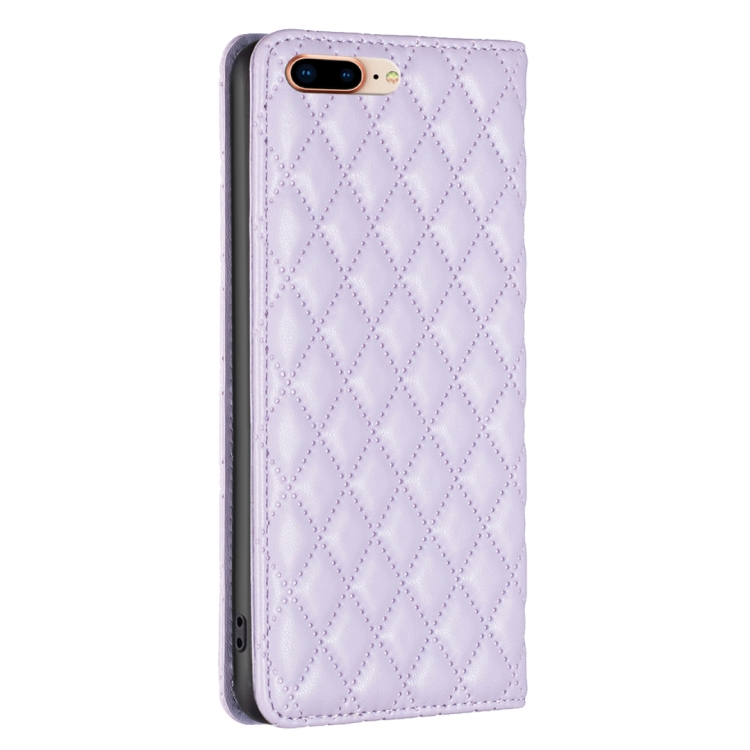 Funda de teléfono iPhone 8 Plus 7 Plus con tapa de cuero magnético Diamond Lattice (Púrpura)