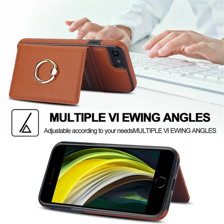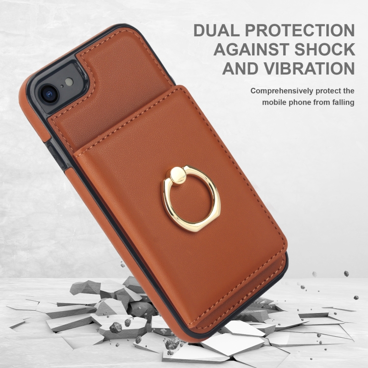 Funda para Teléfono iPhone 8 Plus/7 Plus con Soporte Anillo y Tarjeta Antirrobo Rfid (Marrón)