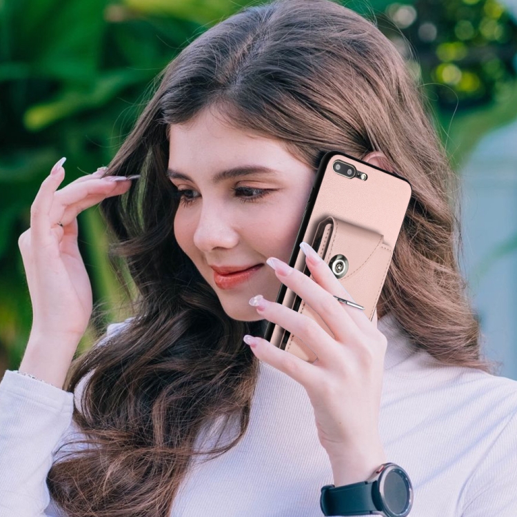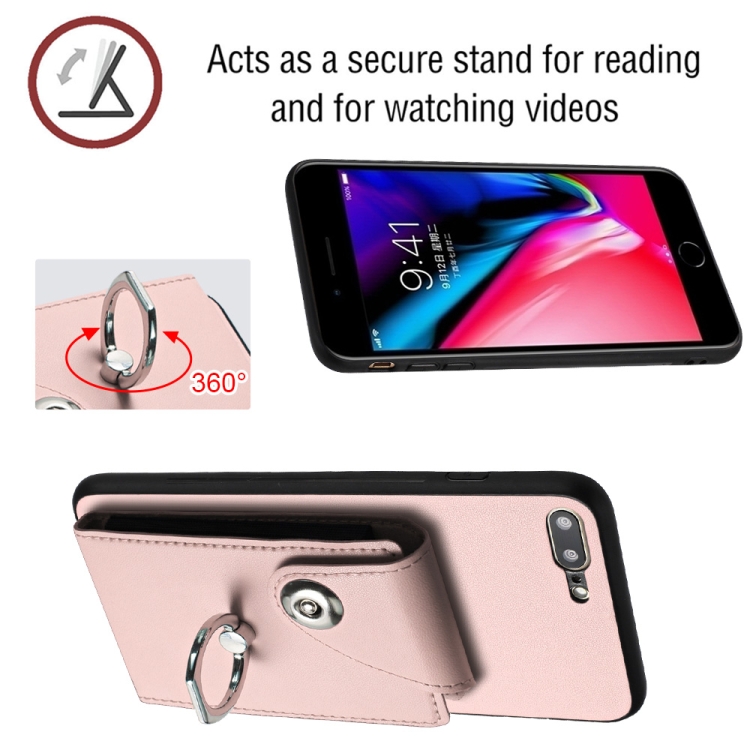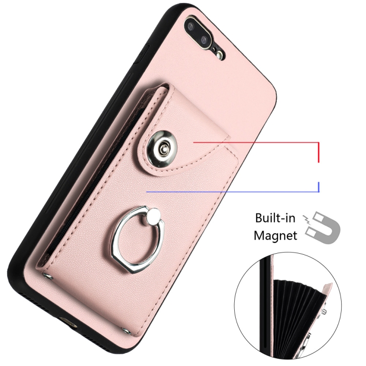 Funda para Teléfono iPhone 8 Plus/7 Plus con Soporte para Anillo y Bolsa para Tarjeta (Rosa)