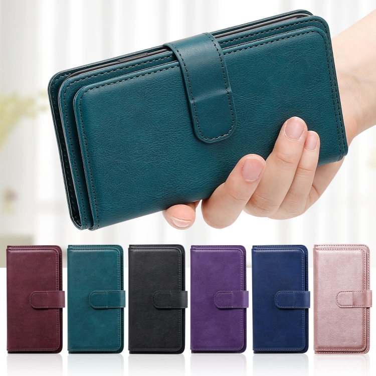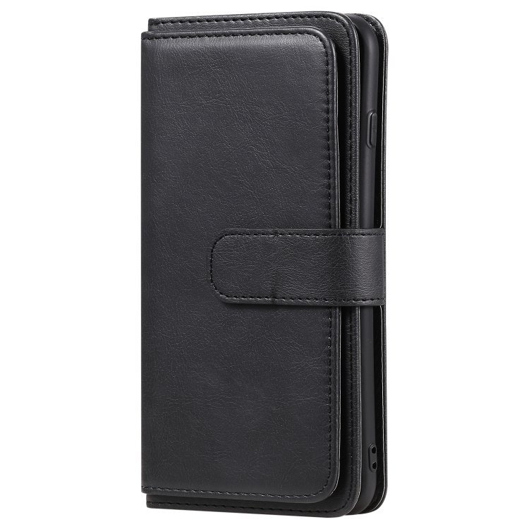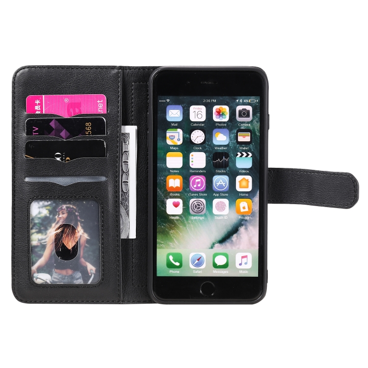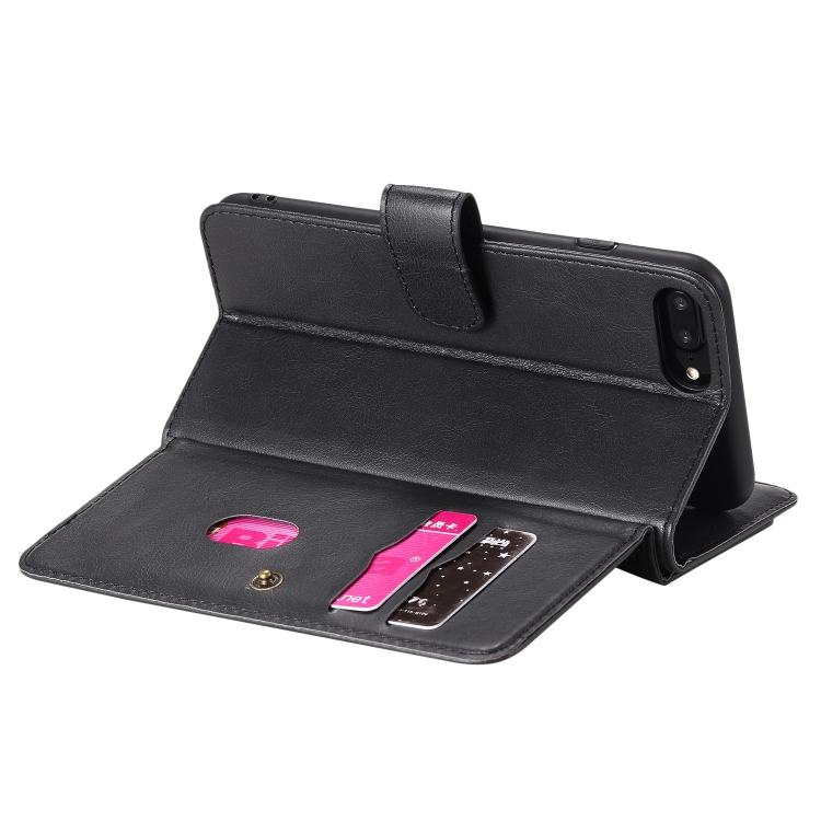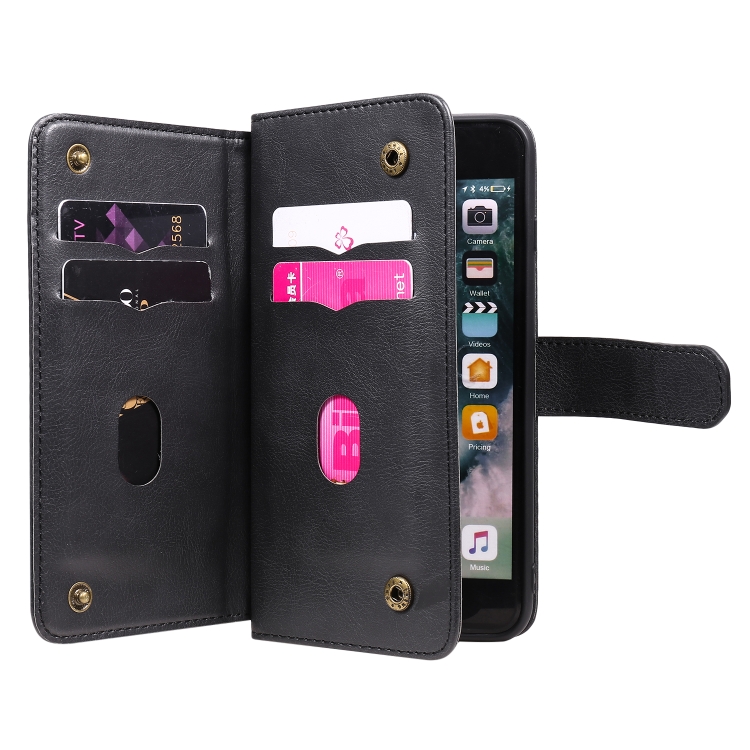 Funda de Cuero para iPhone 8 Plus y 7 Plus Hebilla de Cobre Magnética Multifuncional con Tapa Horizontal y 10 Ranuras para Tarjetas (Negro)