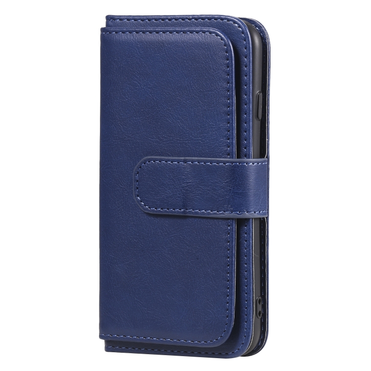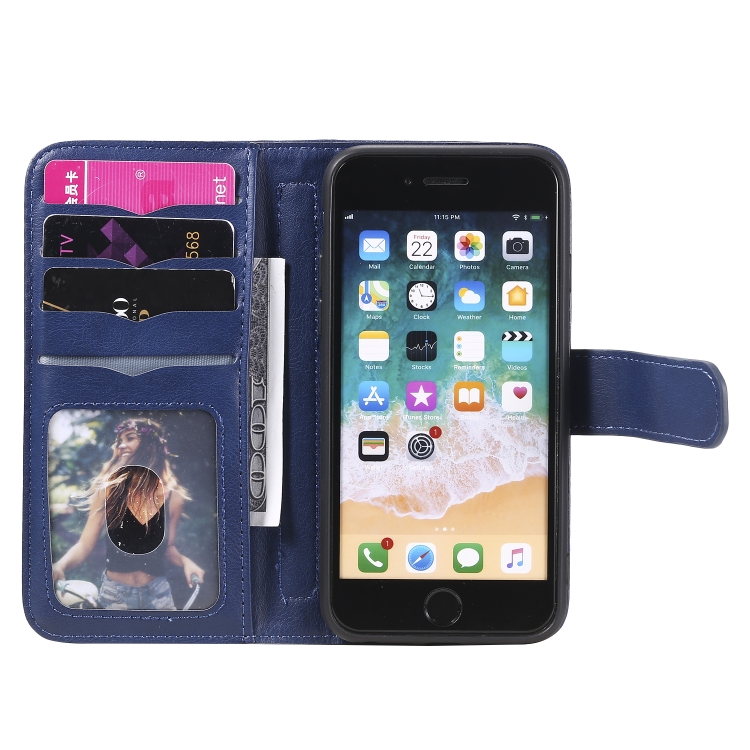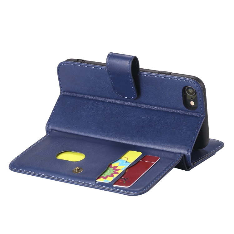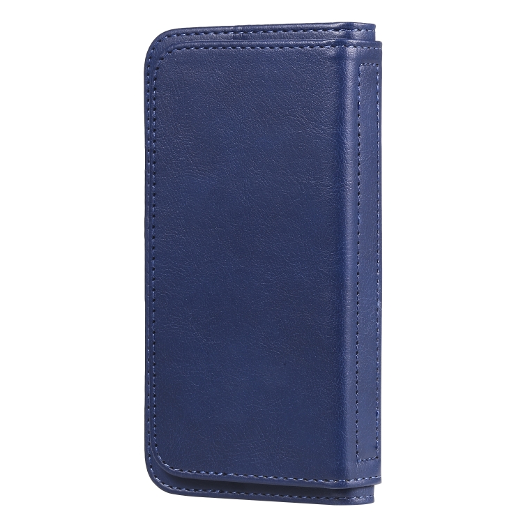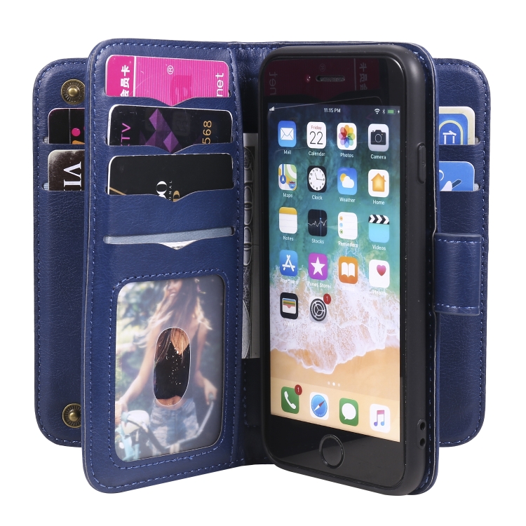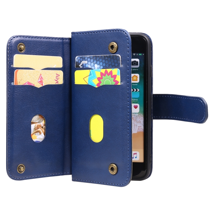Funda de Cuero Magnética para iPhone 8 y 7 Hebilla de Cobre Multifuncional con 10 Ranuras (Azul Oscuro)