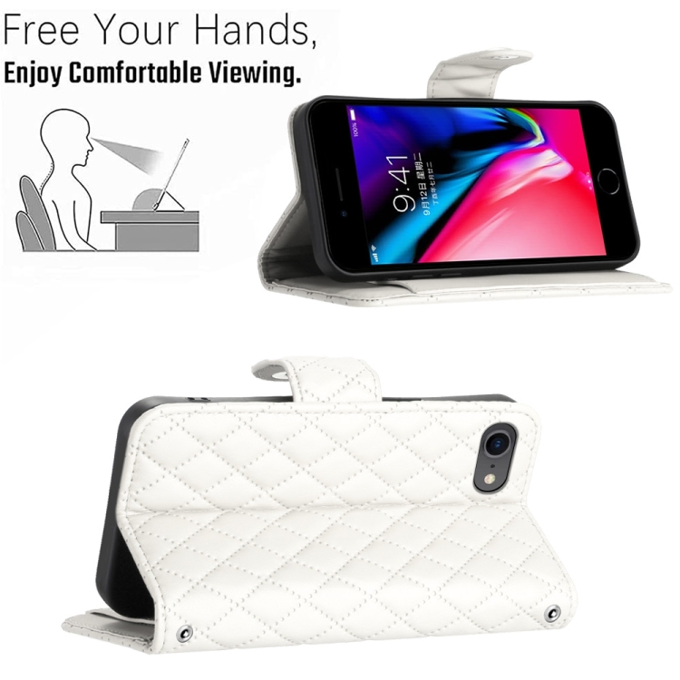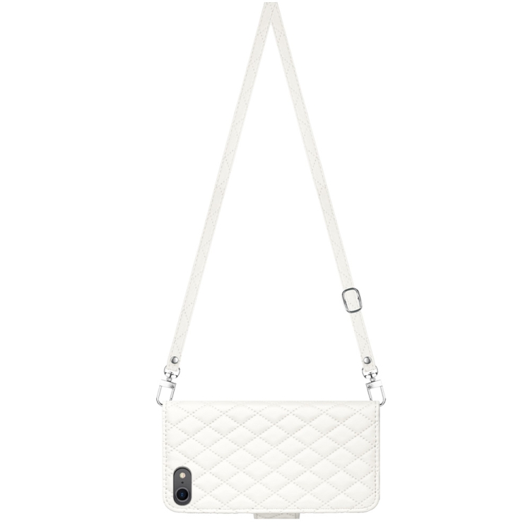 Funda para Teléfono iPhone SE 2022/2020/8/7 Cuero Tapa Textura Rómbica Cordón Largo (Blanco)