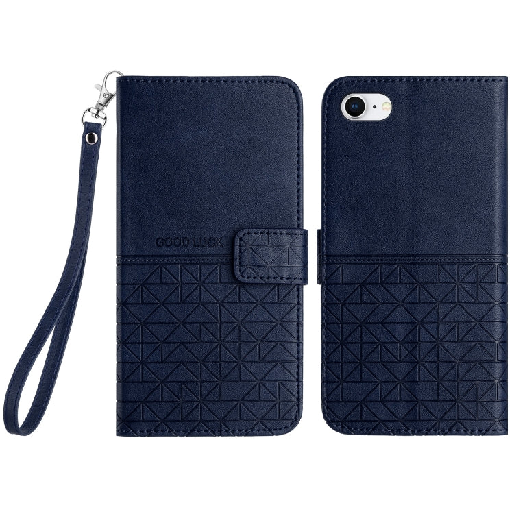 Funda para Teléfono iPhone SE 2022/2020/8/7 Cuero Textura Rómbica con Cordón (Azul)