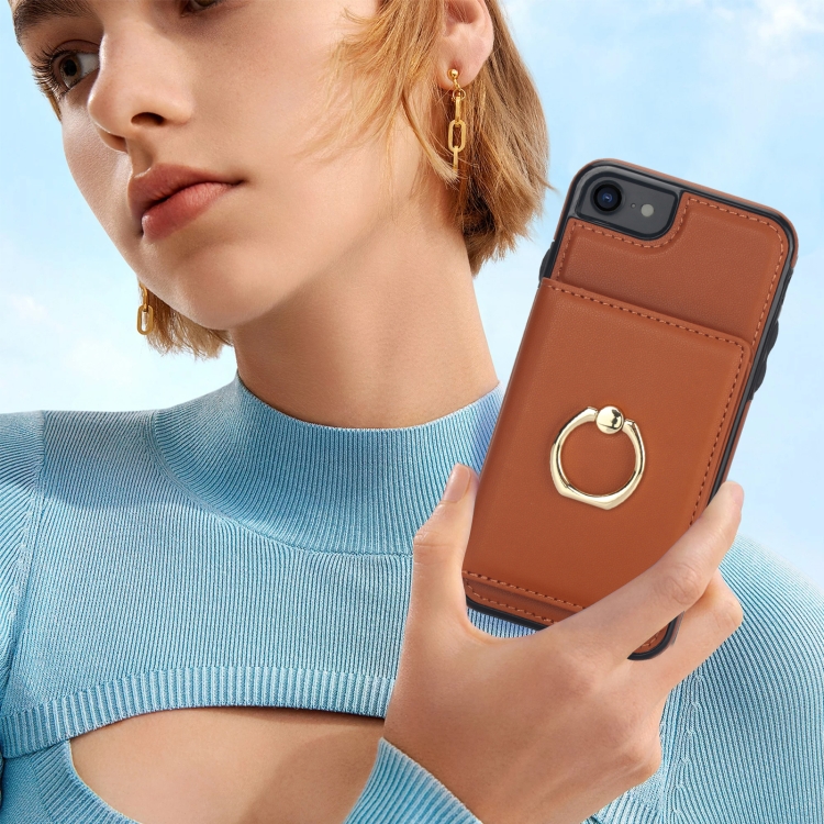 Estuche para Teléfono iPhone SE 2022/SE 2020/6/7/8 con Soporte Anillo y Tarjeta Antirrobo RFID (Marrón)