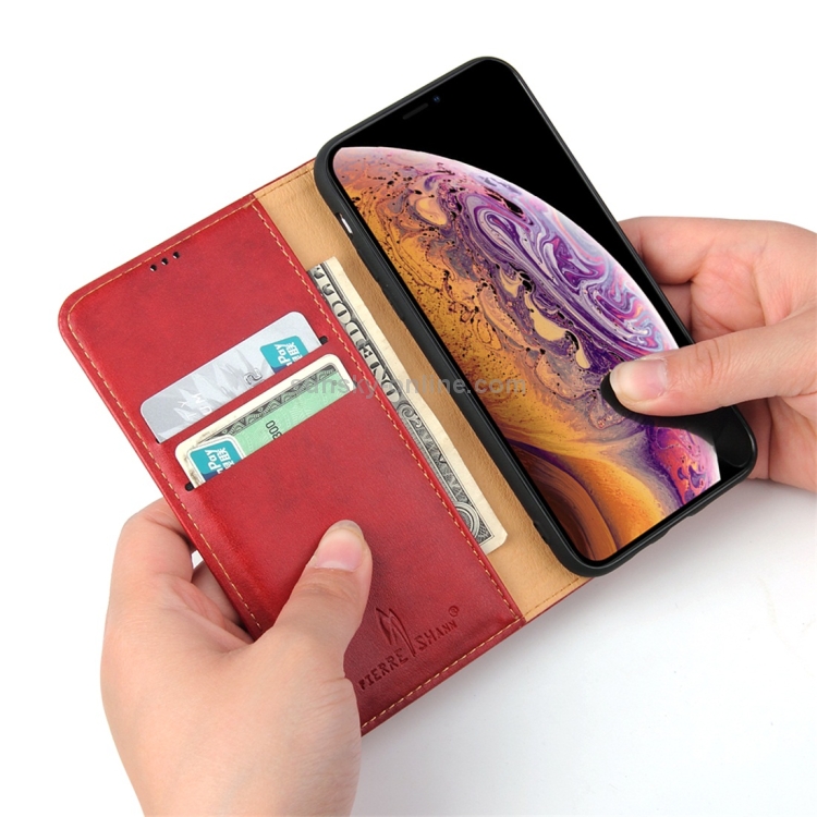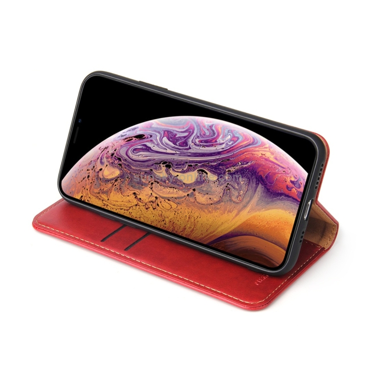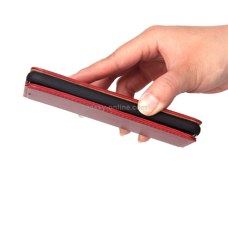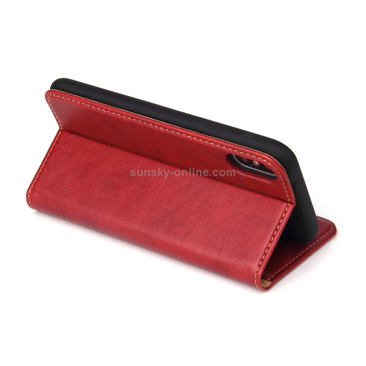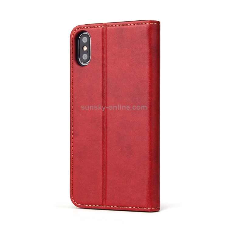 Funda de Cuero Dermis Texture para iPhone X Xs con Tapa Horizontal Soporte Ranuras Tarjetas Billetera (Rojo)