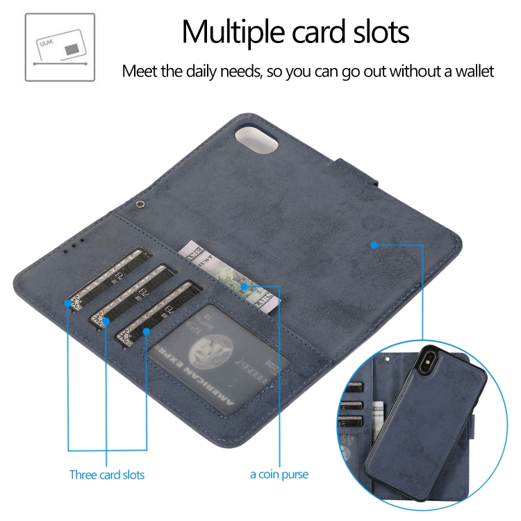 Funda para iPhone X Xs Klt888-2 Cuero TPU Pu Tapa Horizontal Magnética Soporte Ranuras Tarjetas Marco Fotos Billetera (Azul Oscuro)
