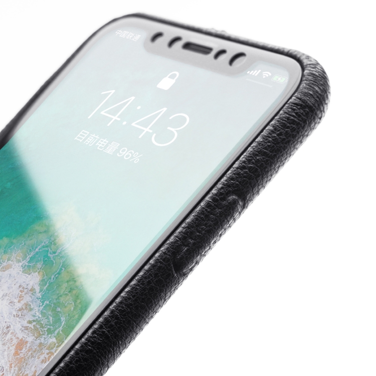 Funda Protectora Qialino para iPhone X / Xs Piel de Vacuno Textura Ciervo (Negro)