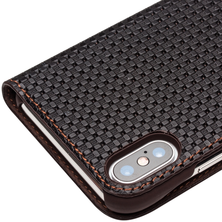Funda de Cuero Qialino para iPhone X / Xs con Tapa Horizontal, Ventana de Vista Inteligente y Función Reposo (Marrón)
