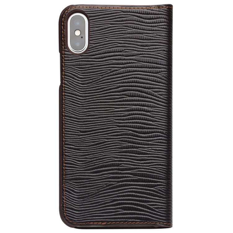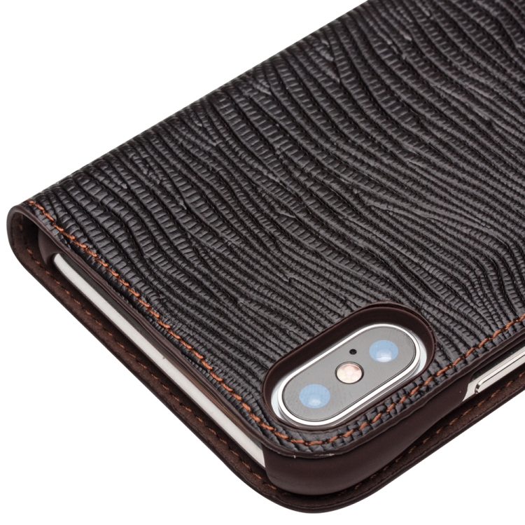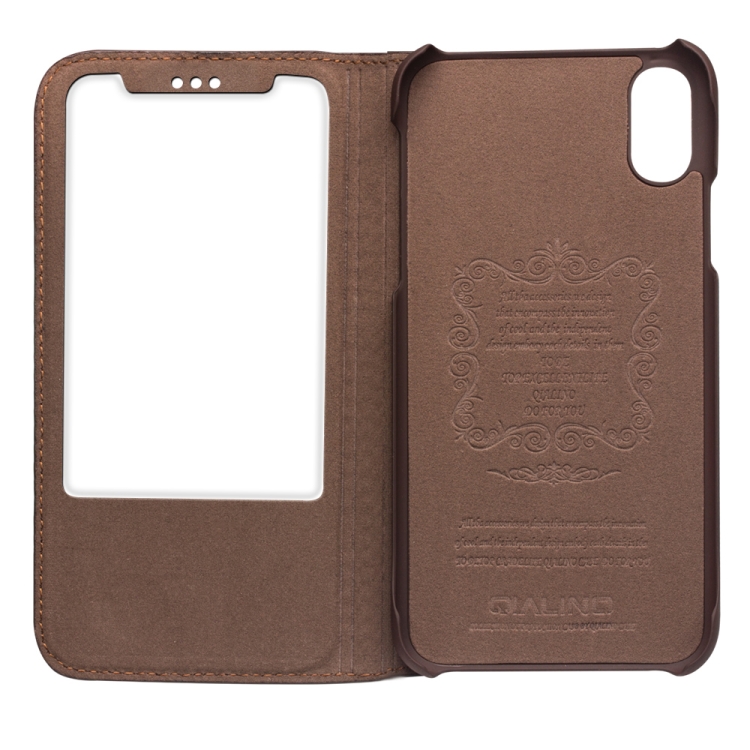 Funda de Cuero Qialino para iPhone X Xs con Tapa Horizontal Ventana Inteligente y Función Reposo (Marrón)