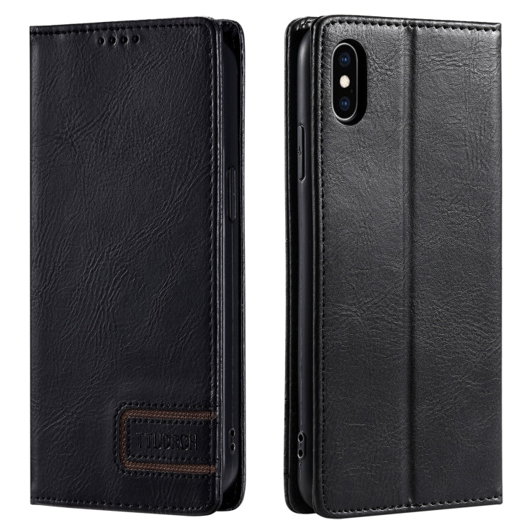 Funda de Teléfono Ttudrch para iPhone X / Xs Cuero Magnético con Textura Retro (Negro)