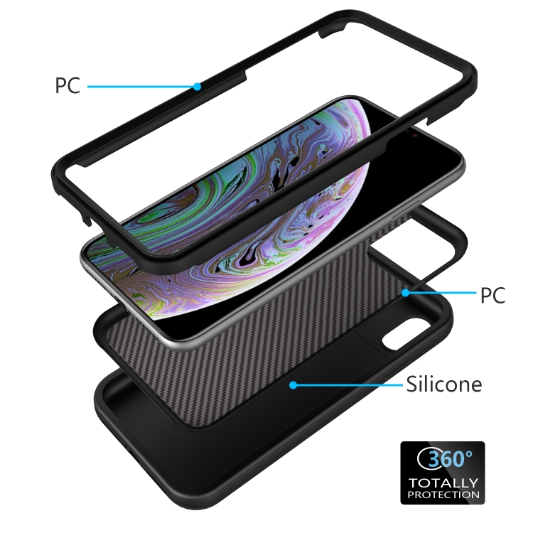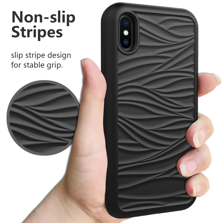 Funda Protectora iPhone X y Xs Wave Pattern 3 en 1 Silicona y PC a Prueba de Golpes (Negro)