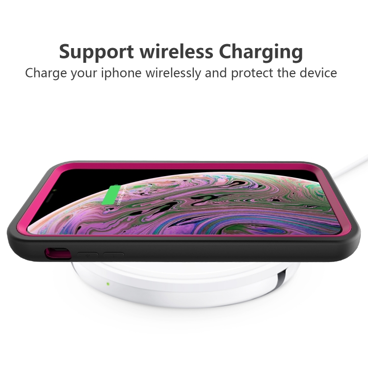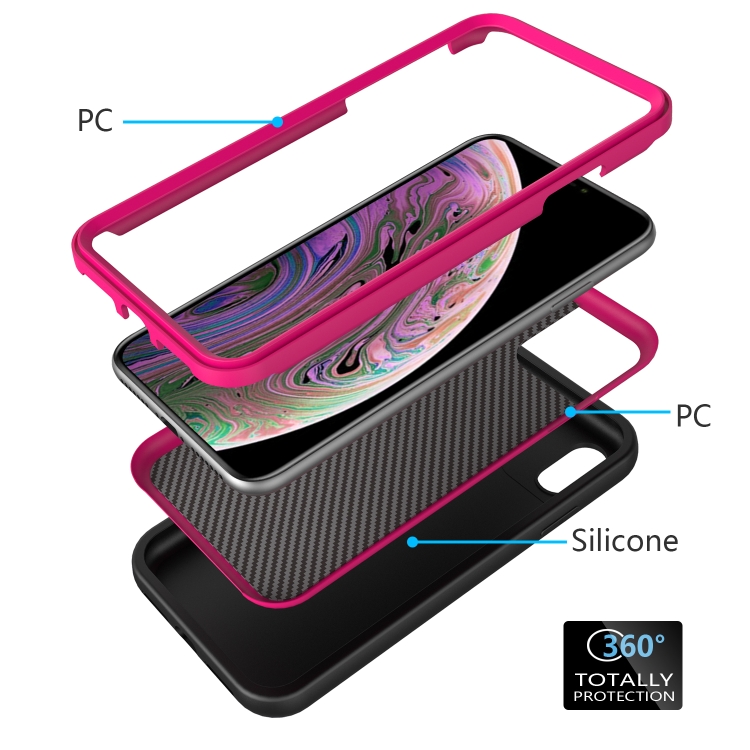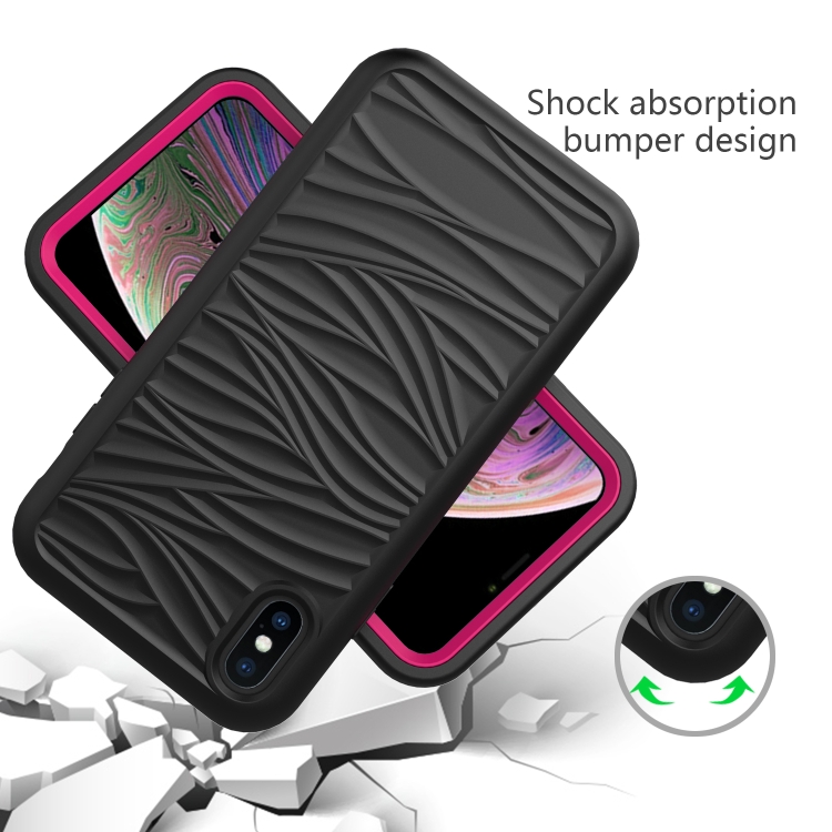 Funda Protectora 3 En 1 para iPhone X y Xs Wave Pattern Silicona y PC (Negro + Rosa Fuerte)