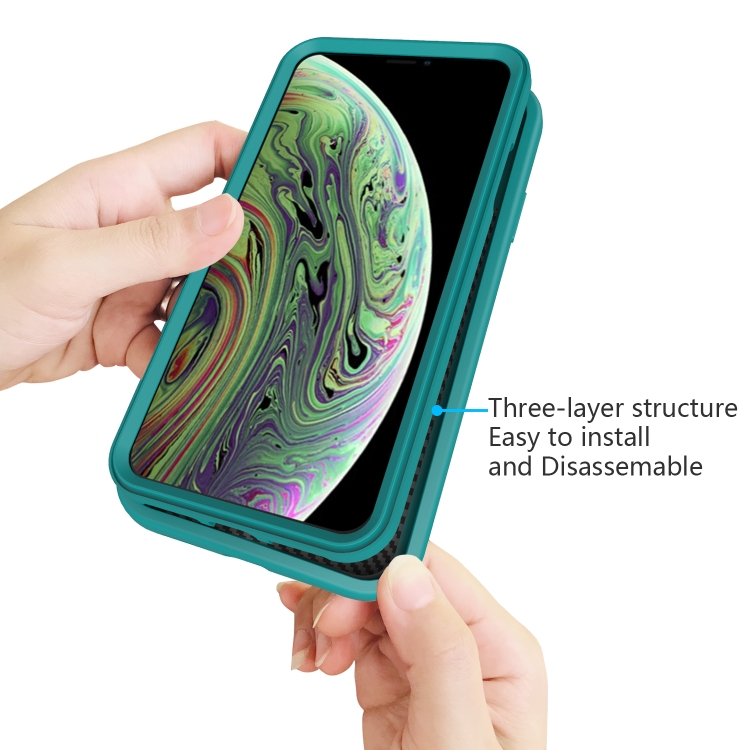Funda Protectora 3 en 1 iPhone X y Xs Silicona y PC a Prueba de Golpes (Verde Mar Oscuro)