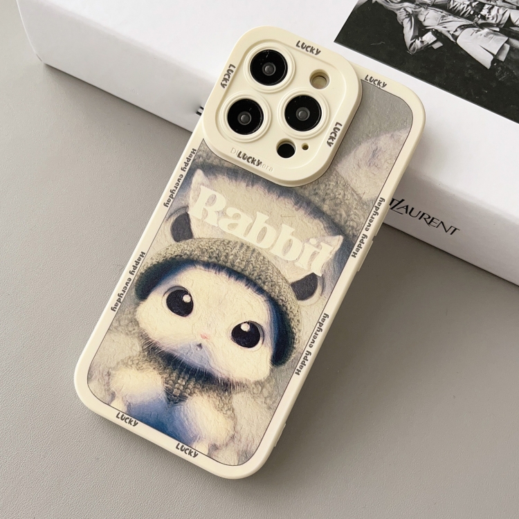 Funda para iPhone Xr Conejo con Pintura al Óleo de Silicona Líquida (Verde Beige)