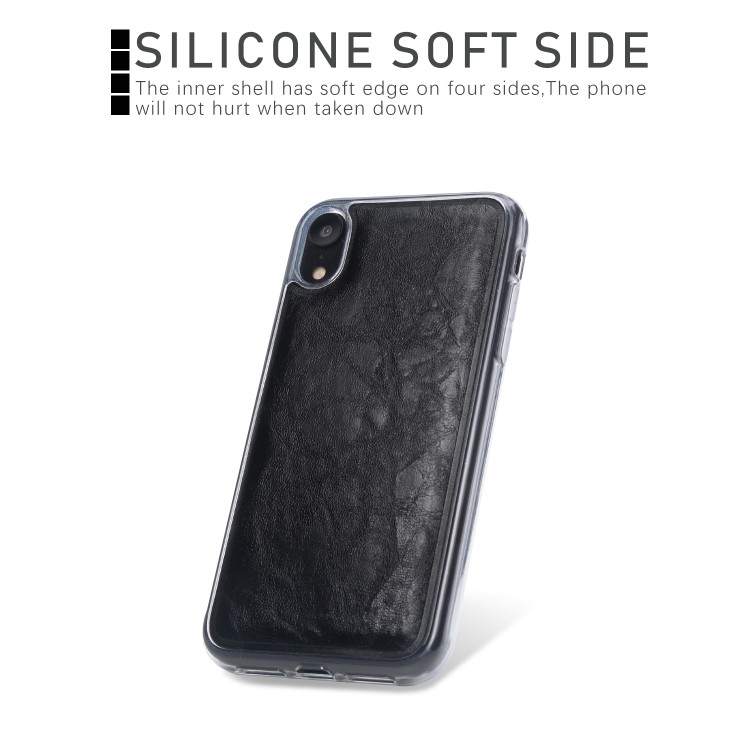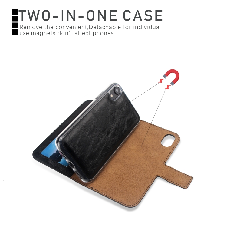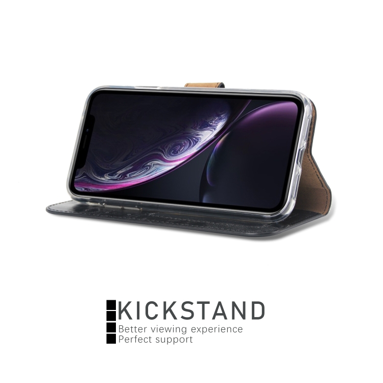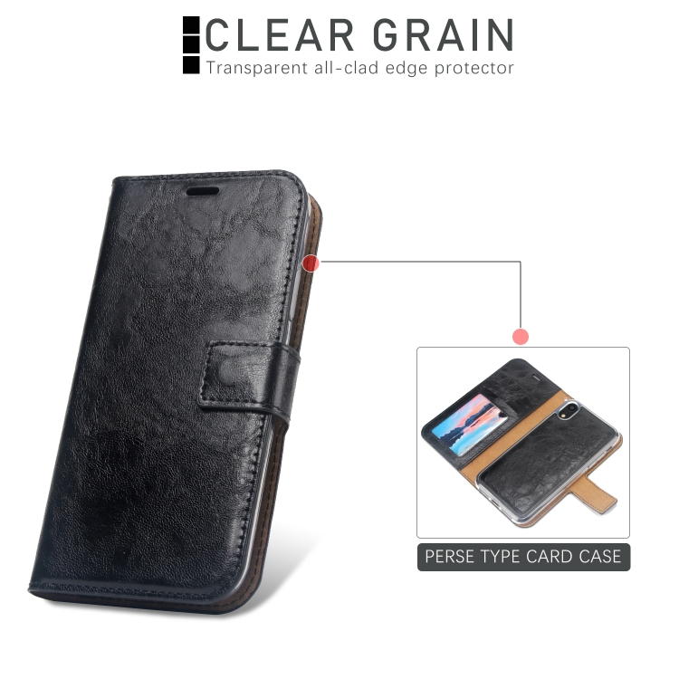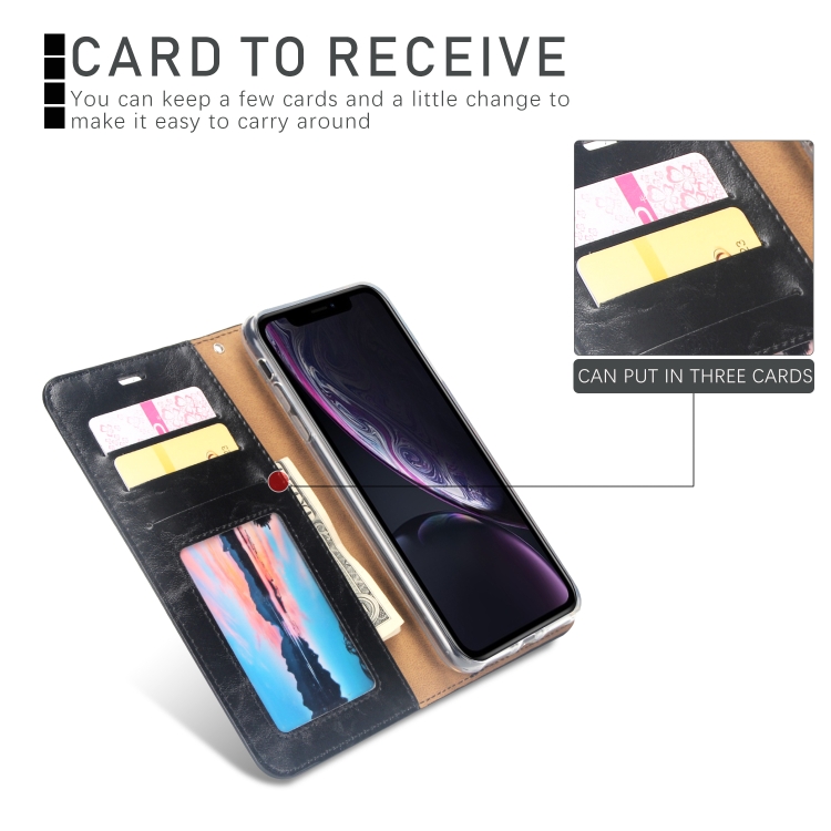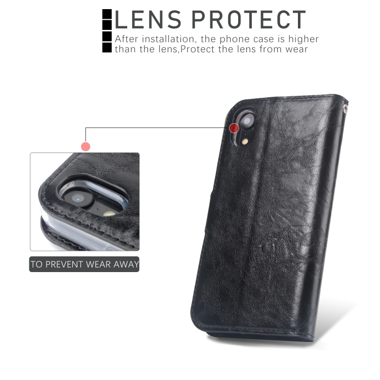 Funda para iPhone Xr Crazy Horse Cubierta Trasera Magnética Cuero con Tapa Horizontal Soporte Ranuras Tarjetas Marco Fotos Billetera (Negro)