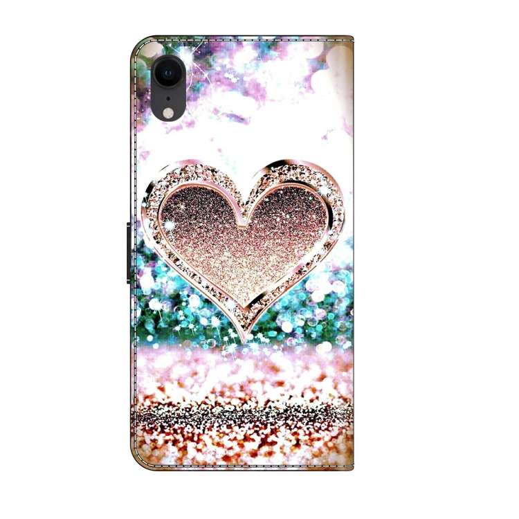 Funda Protectora para iPhone Xr Crystal 3D Cuero Prueba de Golpes (Corazón de Diamante Rosa)