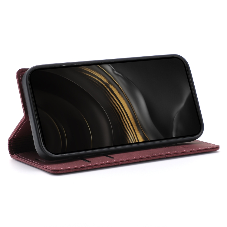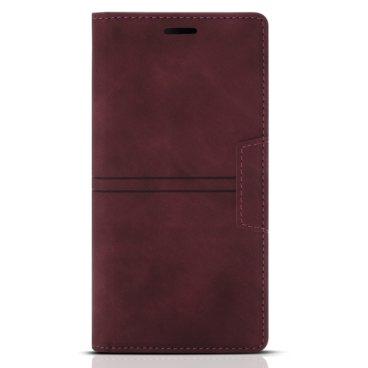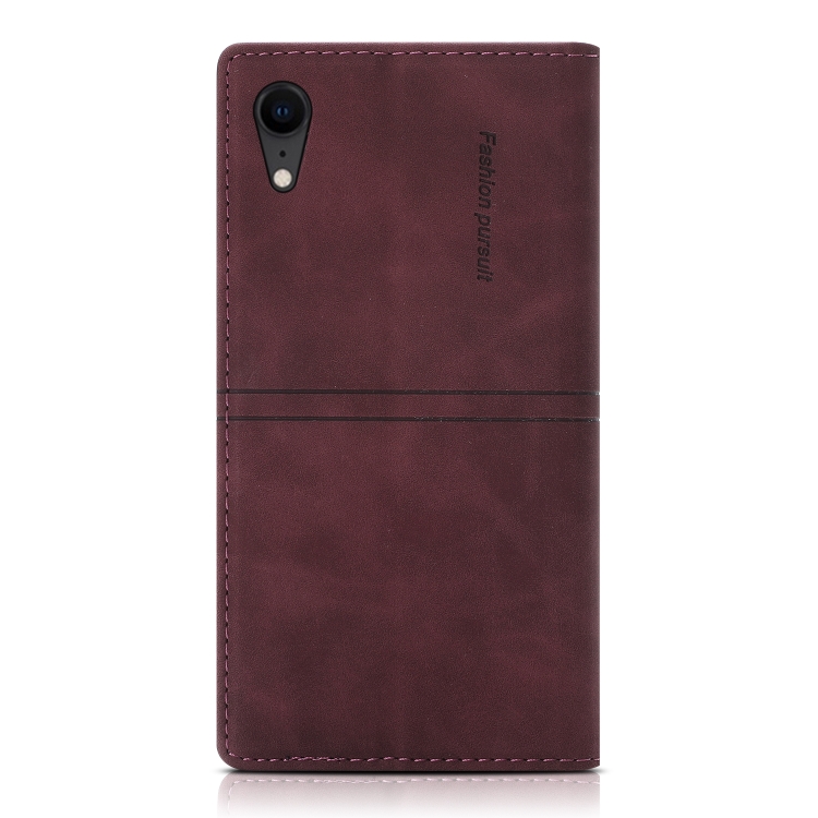 Funda para iPhone Xr Dream Magnetic Suction de Cuero con Tapa Horizontal, Soporte y Ranura para Tarjeta y Billetera (Rojo Vino)