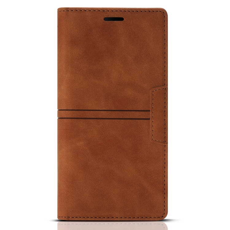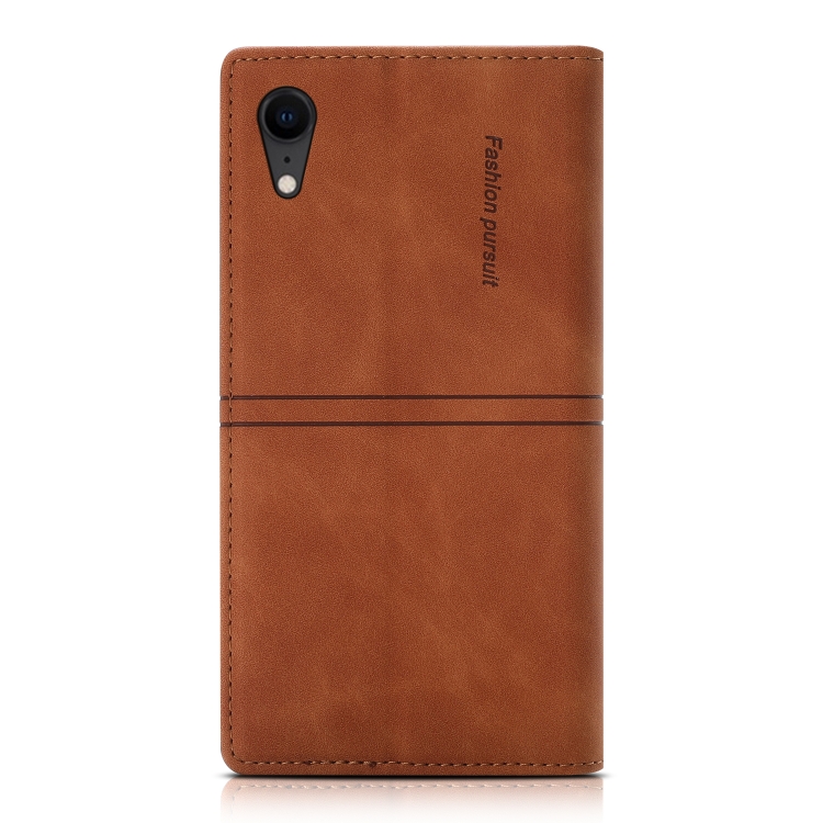 Funda para iPhone Xr Dream Magnetic Suction de Cuero PU con Tapa Horizontal, Soporte, Ranura para Tarjeta y Billetera (Marrón)