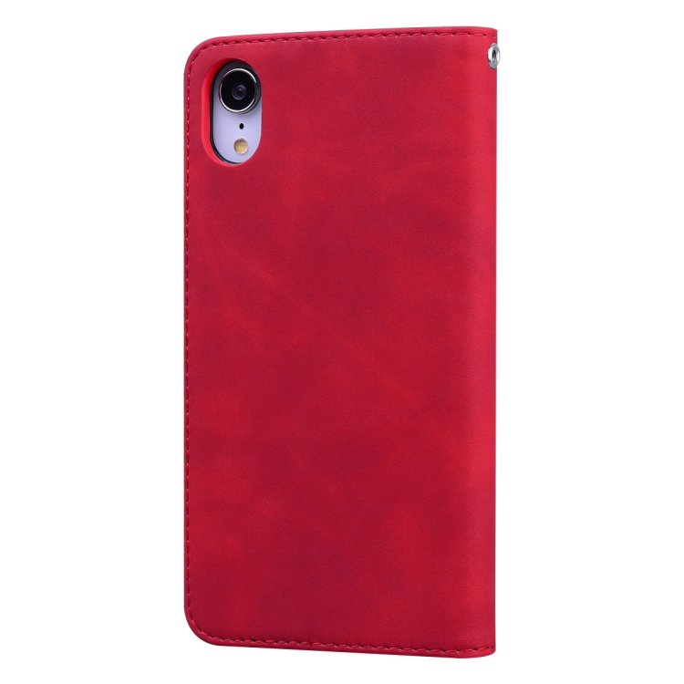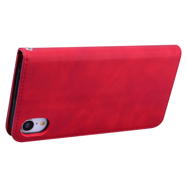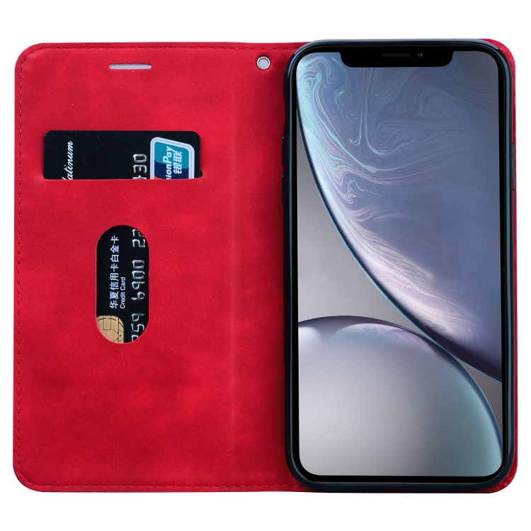 Estuche para iPhone Xr Cuero de Pu con Tapa Horizontal Magnética Soporte Ranura para Tarjeta y Cordón (Rojo)