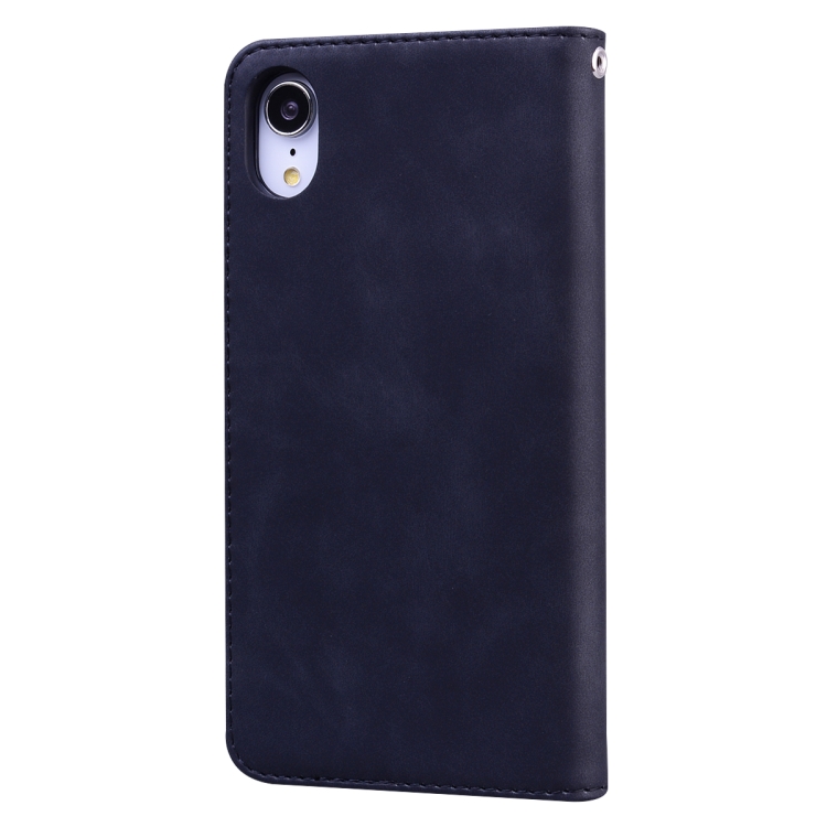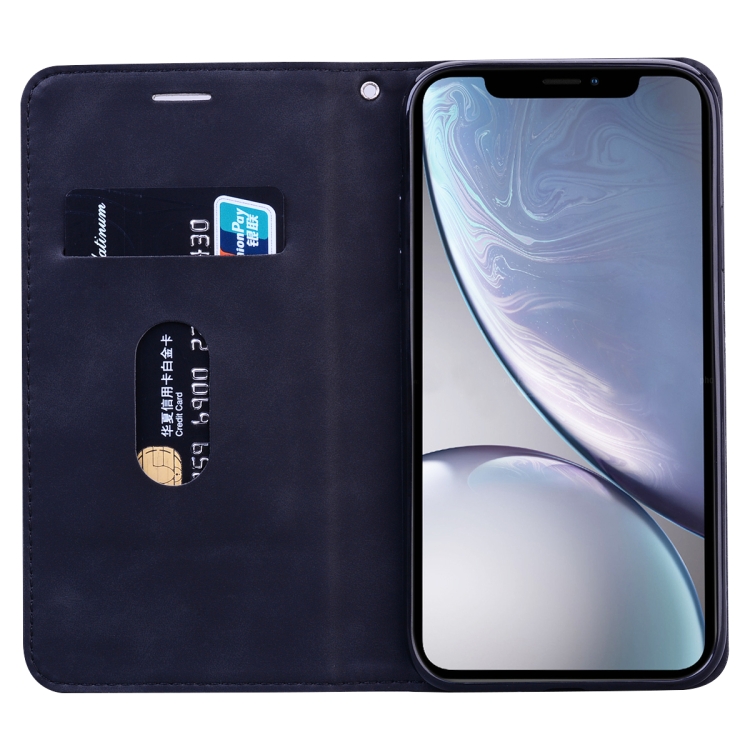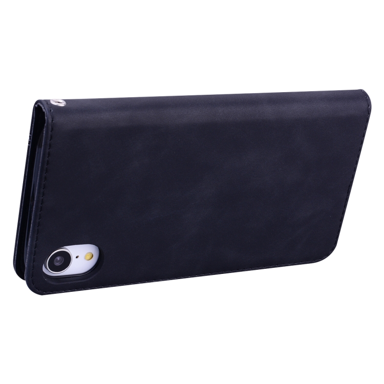 Estuche de Cuero de Pu para iPhone Xr con Tapa Horizontal Magnética Soporte Ranura para Tarjeta y Cordón (Negro)