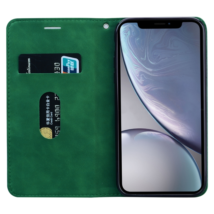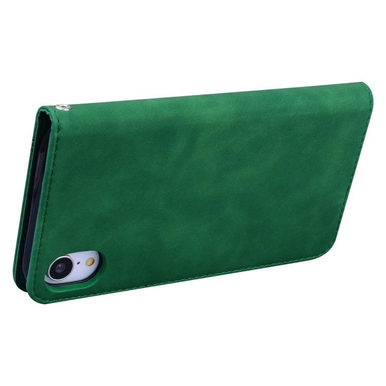 Estuche para iPhone Xr de Cuero de Pu con Tapa Horizontal Magnética Soporte Ranura para Tarjeta y Cordón (Verde)
