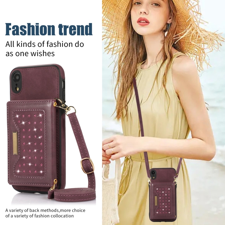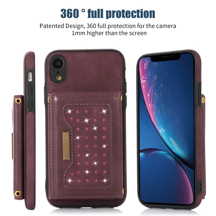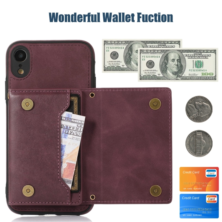 Estuche de Teléfono iPhone Xr Cuero Rfid Tres Pliegues con Cordón (Rojo)