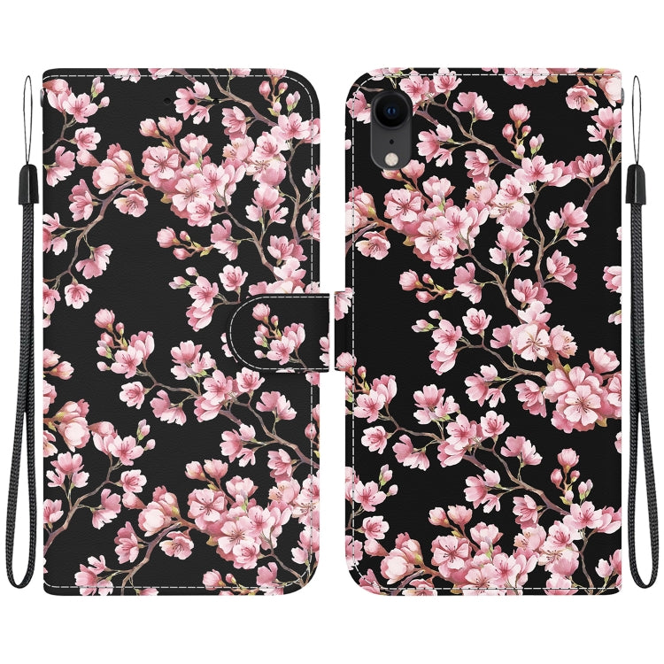 Funda de Cuero para iPhone Xr con Dibujo Coloreado y Textura de Cristal (Flor de Ciruelo)