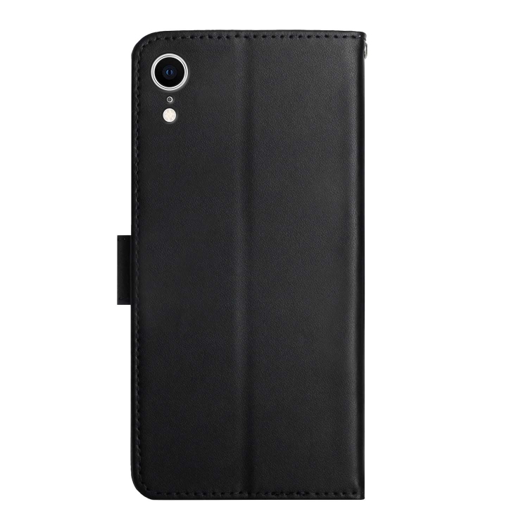 Funda de Teléfono para iPhone Xr con Tapa Horizontal a Prueba de Huellas de Cuero Genuino (Negro)