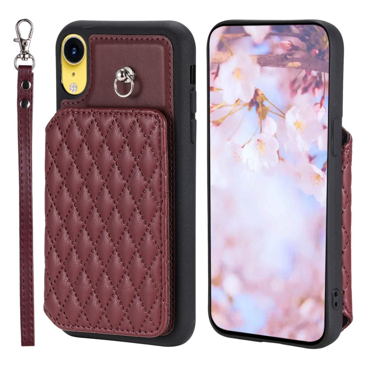 Funda para Teléfono iPhone Xr con Bolsa para Tarjeta Textura de Rejilla y Cordón (Rojo)