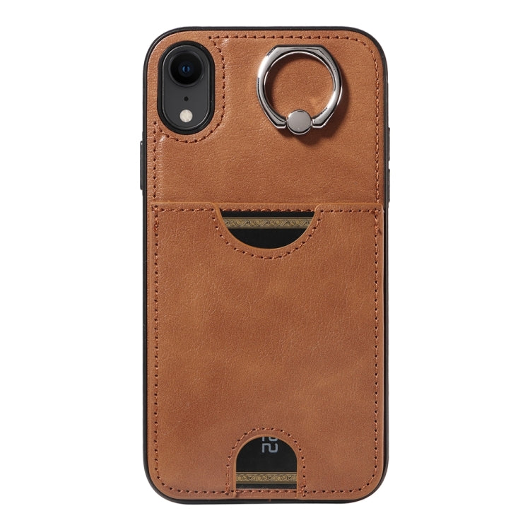 Funda para Teléfono iPhone Xr con Soporte para Anillo y Ranura para Tarjeta (Marrón)