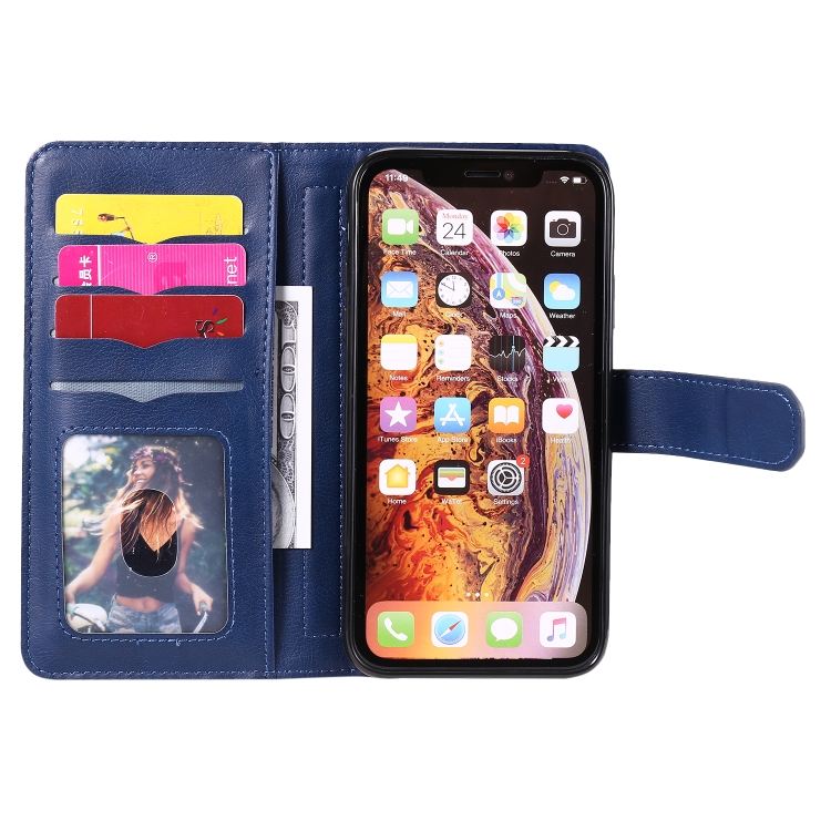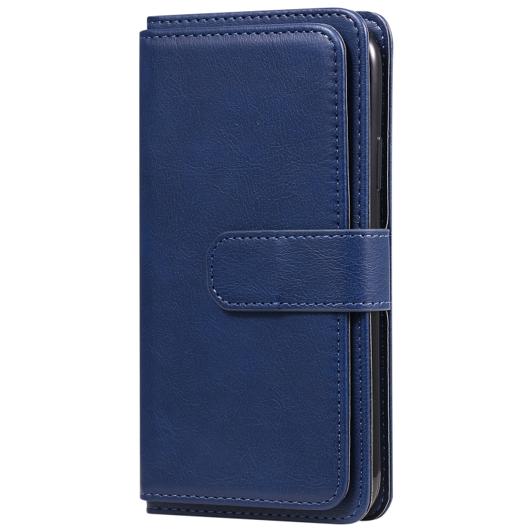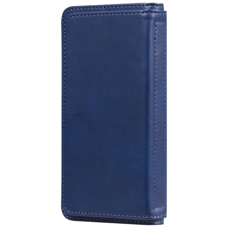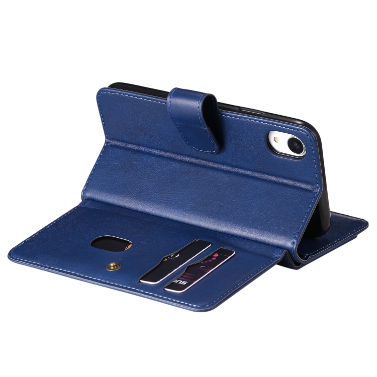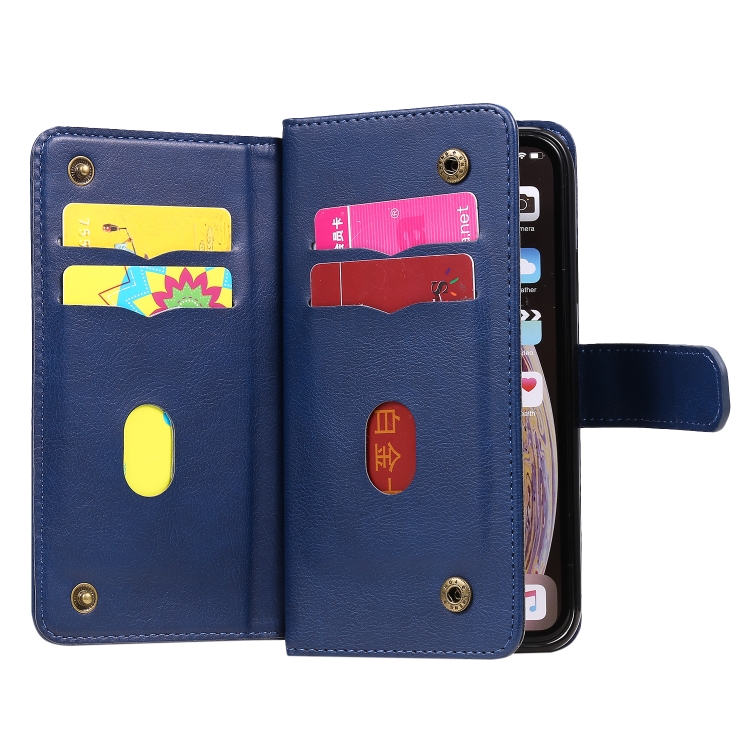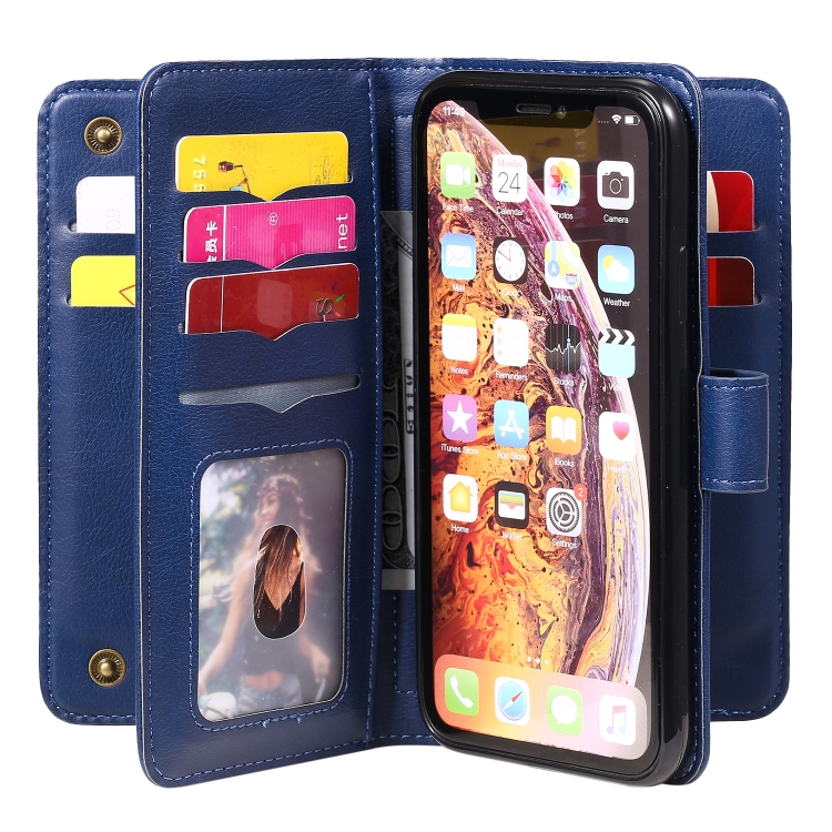 Funda de Cuero para iPhone Xr Hebilla de Cobre Magnética Multifuncional con Tapa Horizontal y 10 Ranuras para Tarjetas (Azul Oscuro)