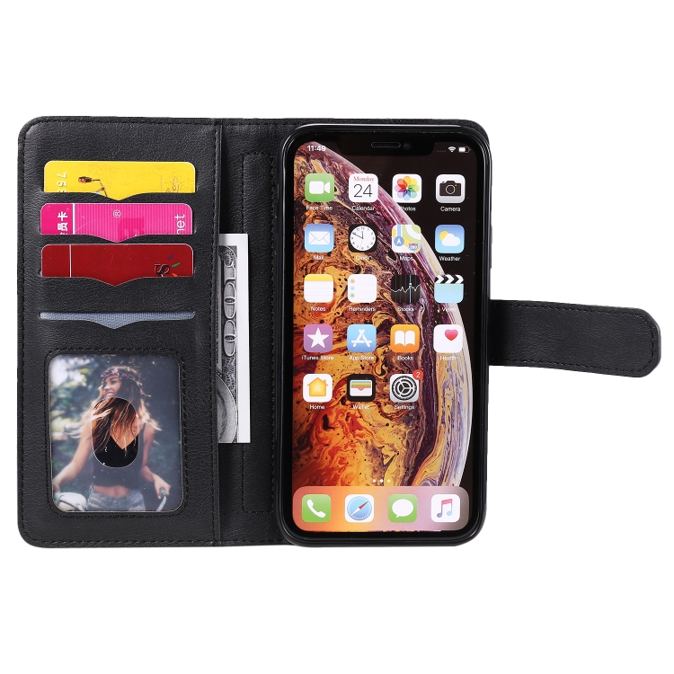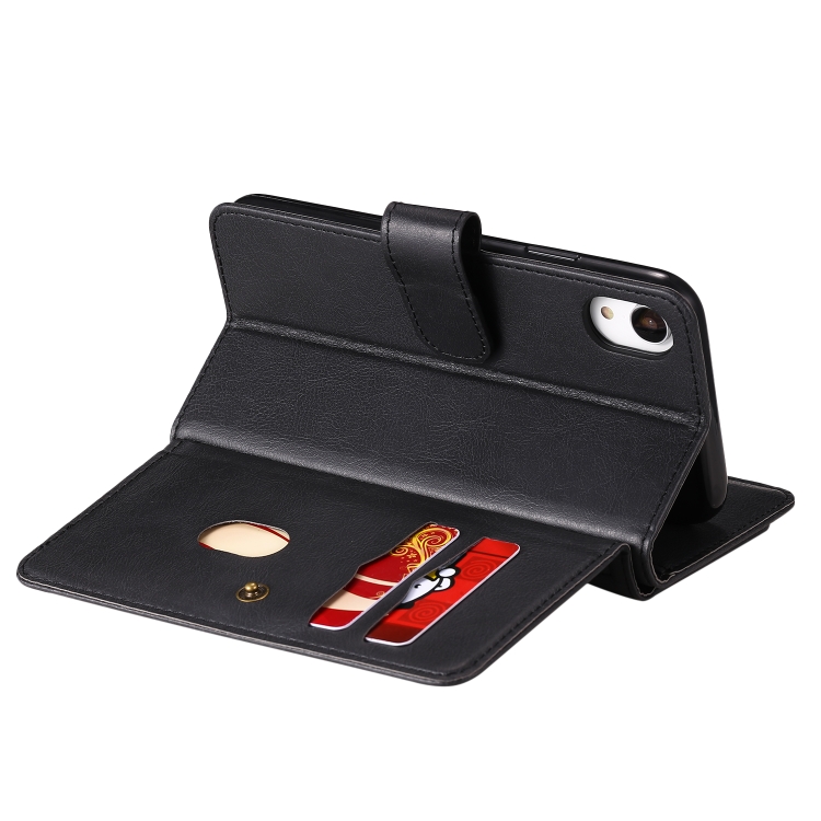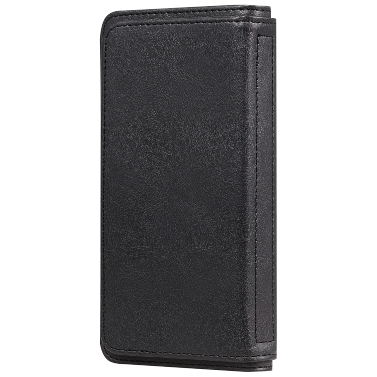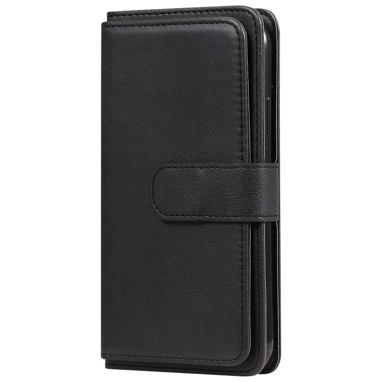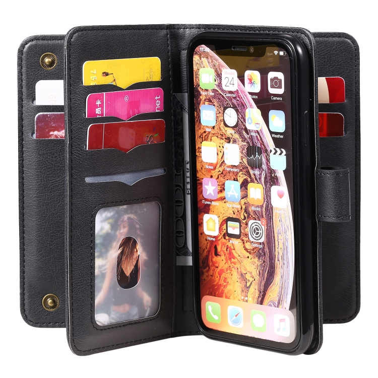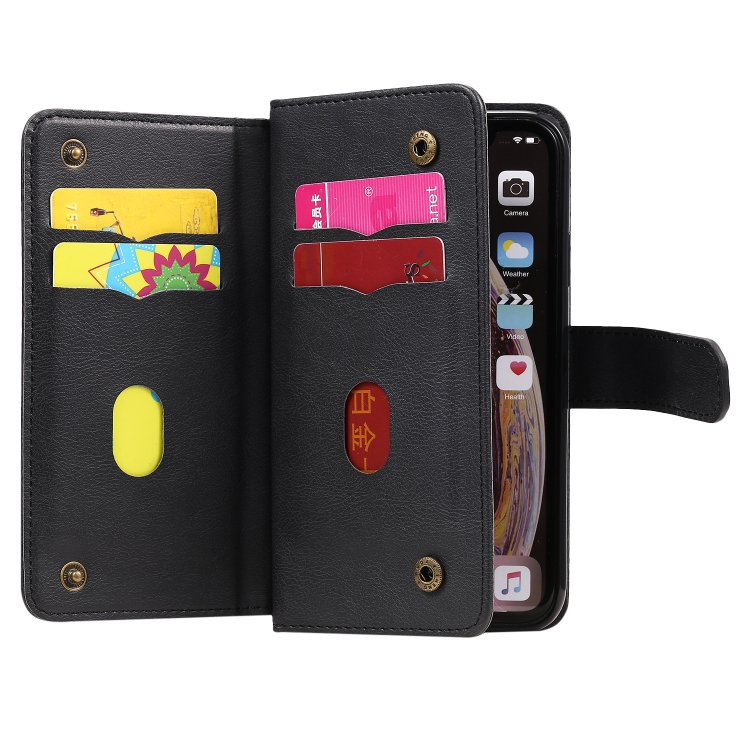Funda de Cuero para iPhone Xr Hebilla de Cobre Magnética Multifuncional con Tapa Horizontal y 10 Ranuras para Tarjetas (Negro)