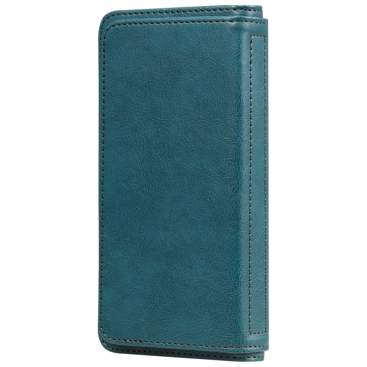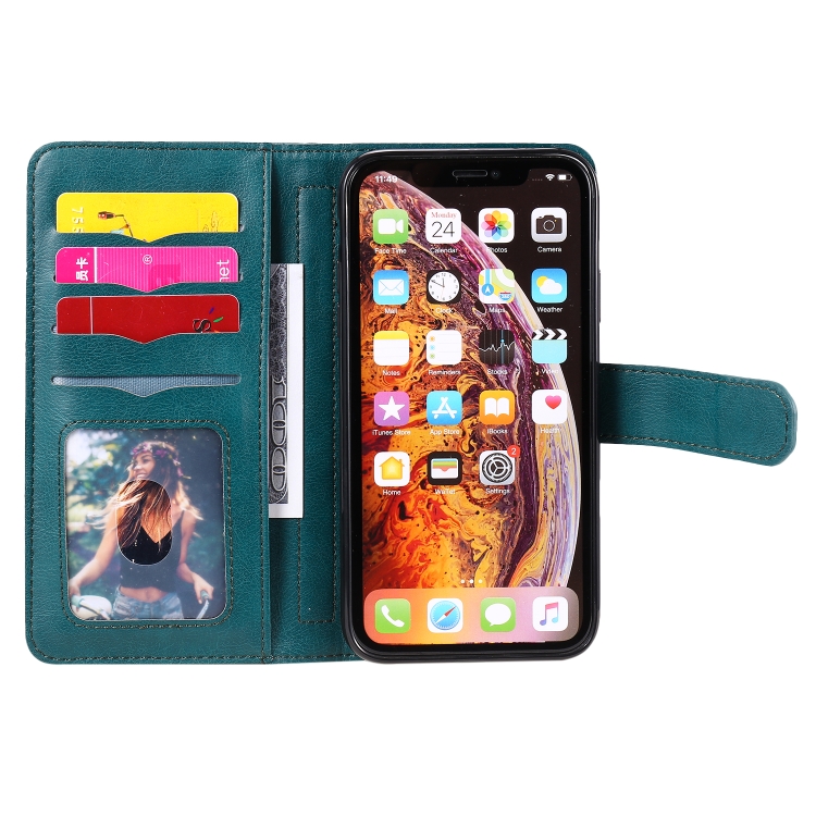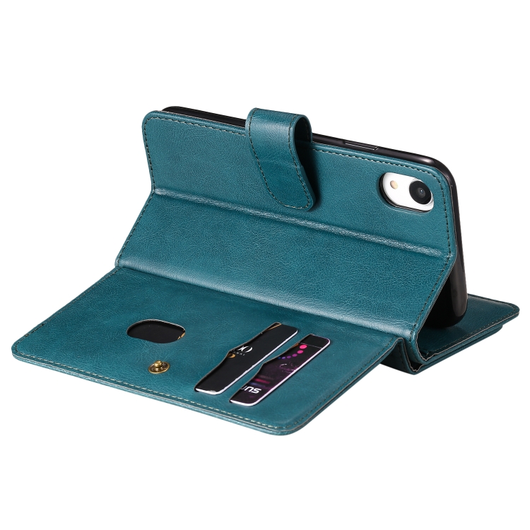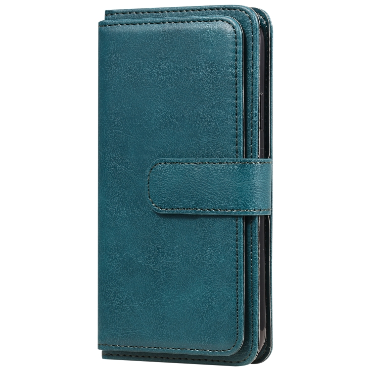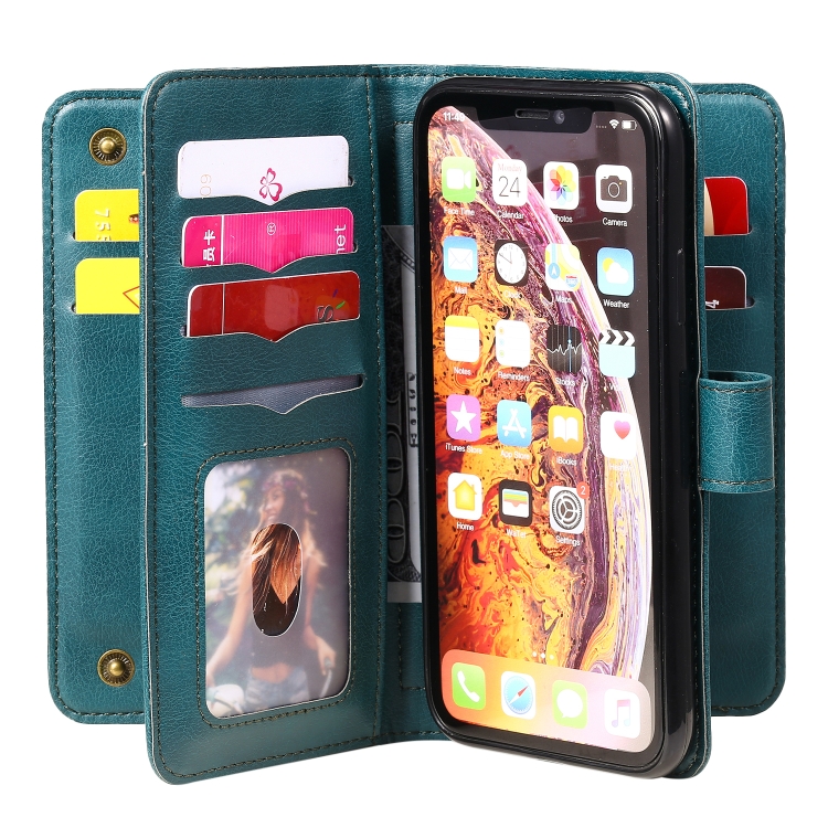 Funda para iPhone Xr Hebilla de Cobre Multifuncional Cuero Tapa Horizontal 10 Ranuras (Verde Oscuro)