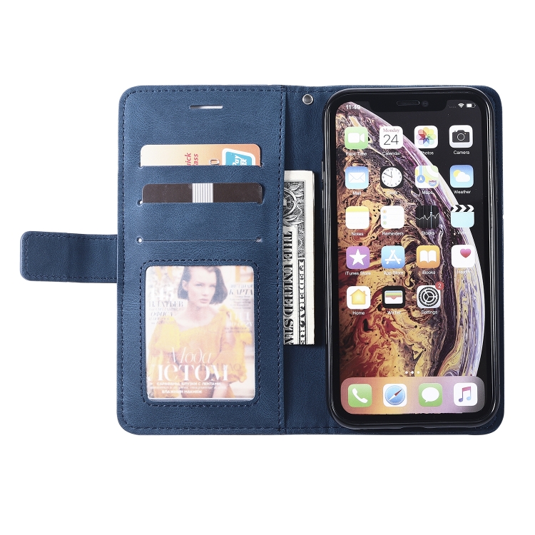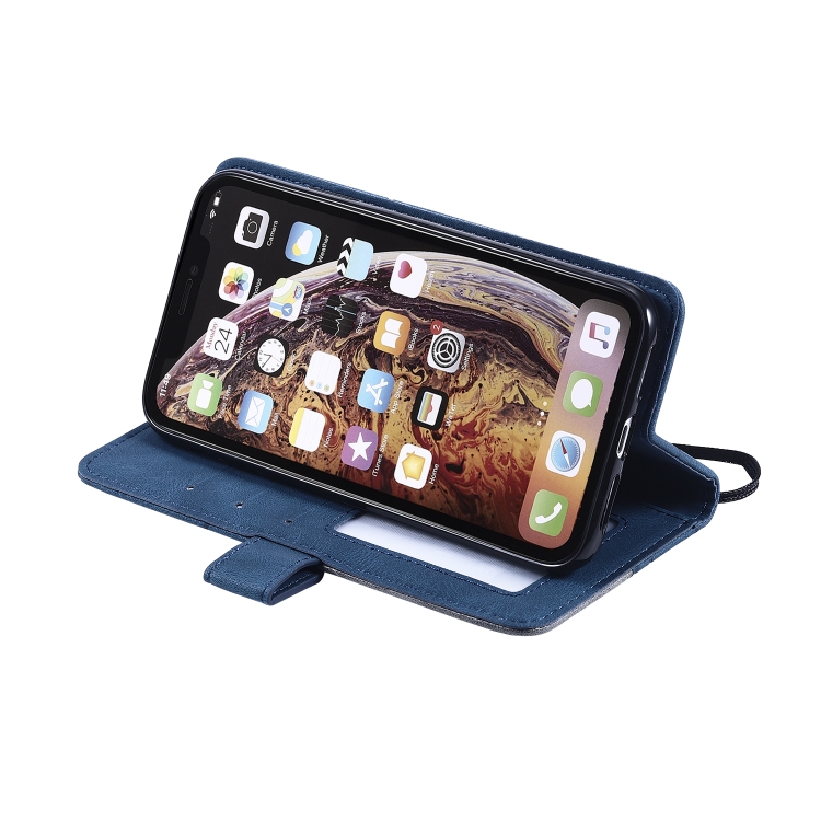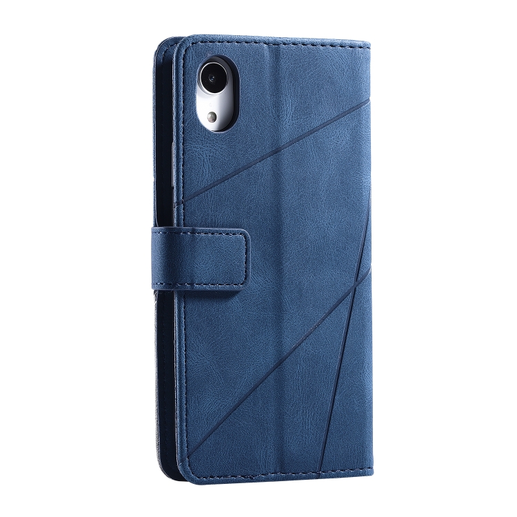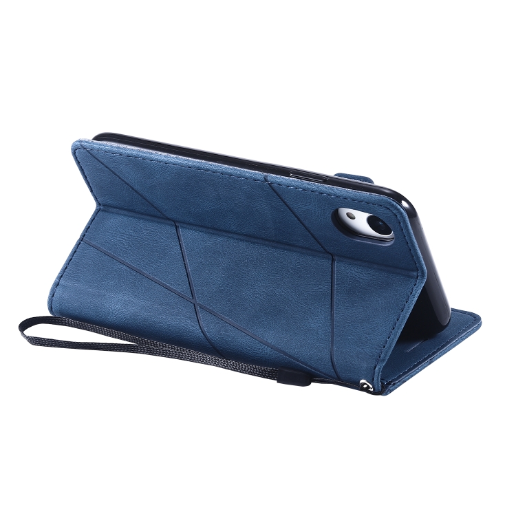 Funda de Cuero para iPhone Xr Skin Feel Splicing con Tapa Horizontal, Soporte, Ranuras para Tarjetas, Billetera y Marco de Fotos (Azul)