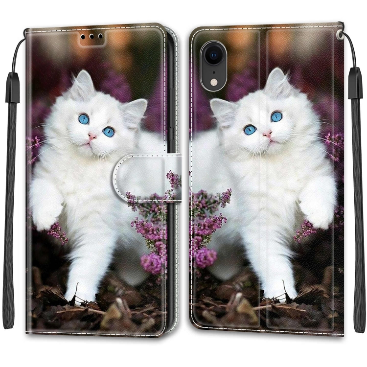 Funda para iPhone Xr Cuero de PU Voltaje Dibujo Coloreado Cierre Magnético Tapa Horizontal Soporte Ranuras para Tarjetas (C08 Flower Bush Big White Cat)