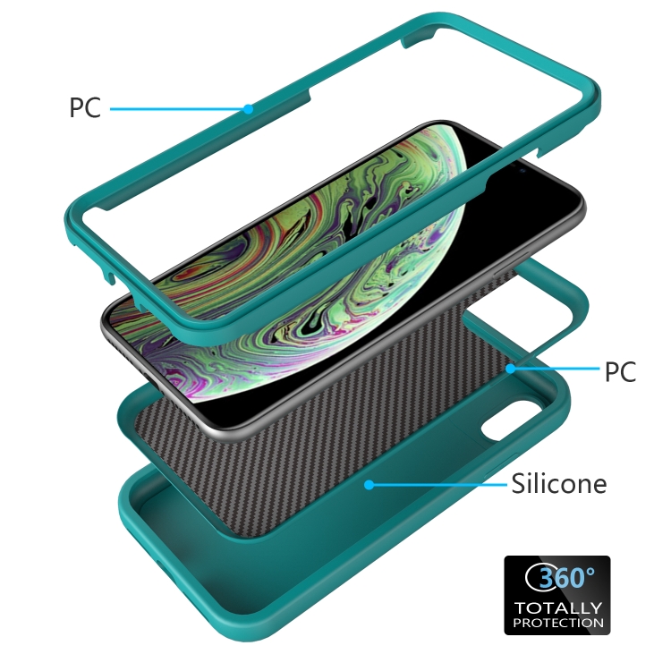 Funda Protectora 3 En 1 para iPhone Xr Wave Pattern Silicona + PC a Prueba de Golpes (Verde Mar Oscuro)