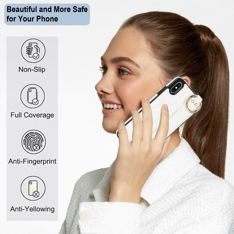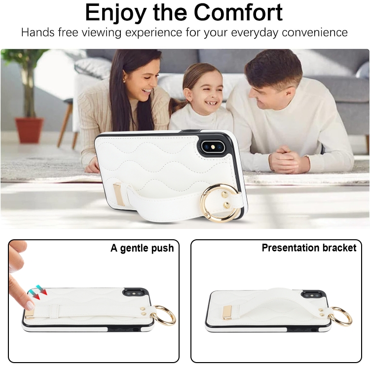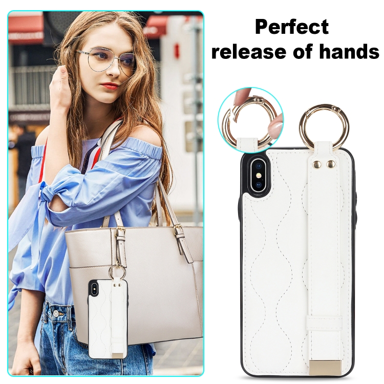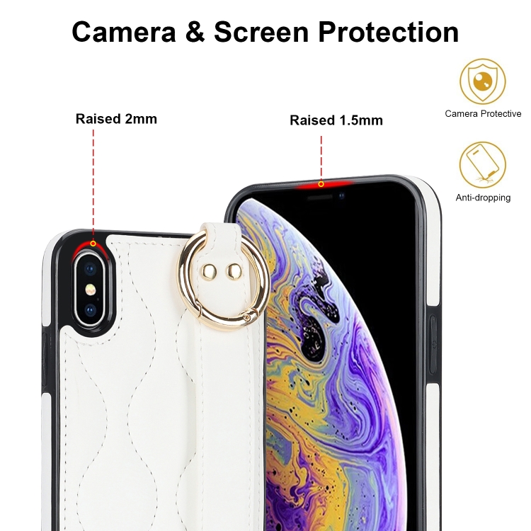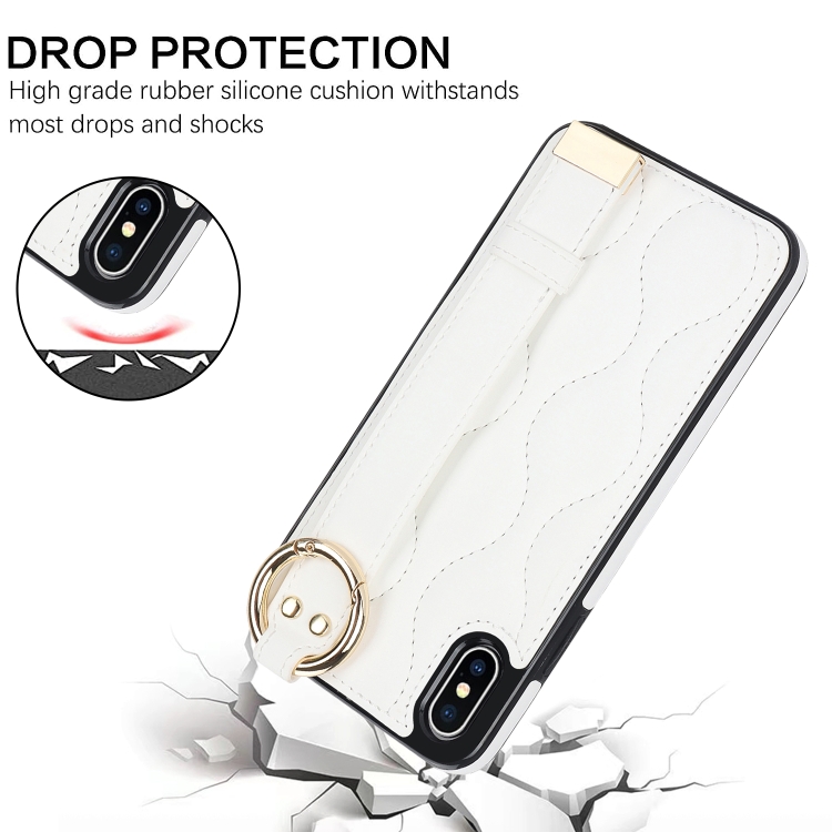 Funda para iPhone Xs Antideslizante Cobertura Completa Anillo PU con Muñequera (Blanco)