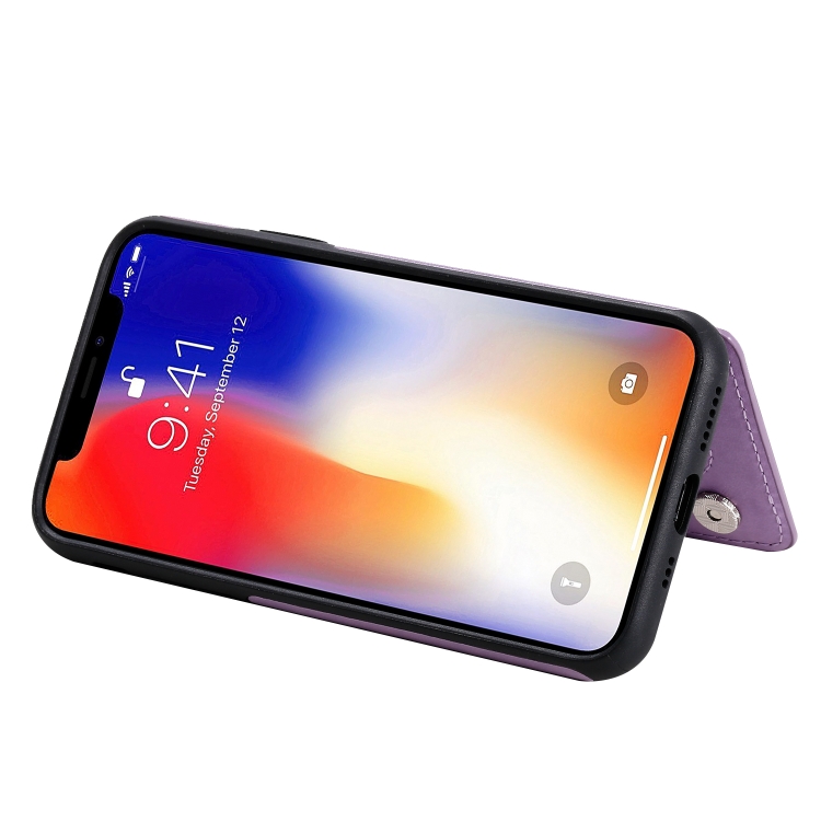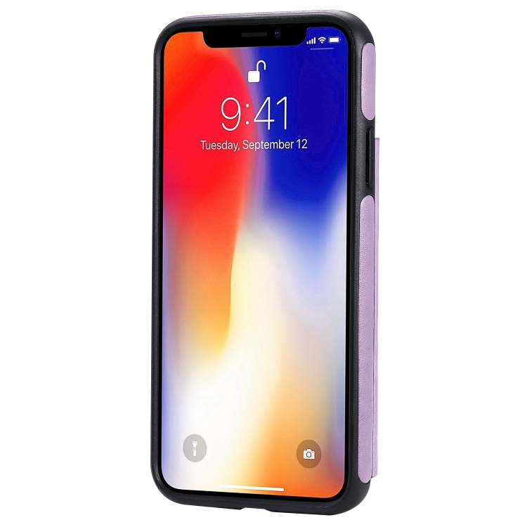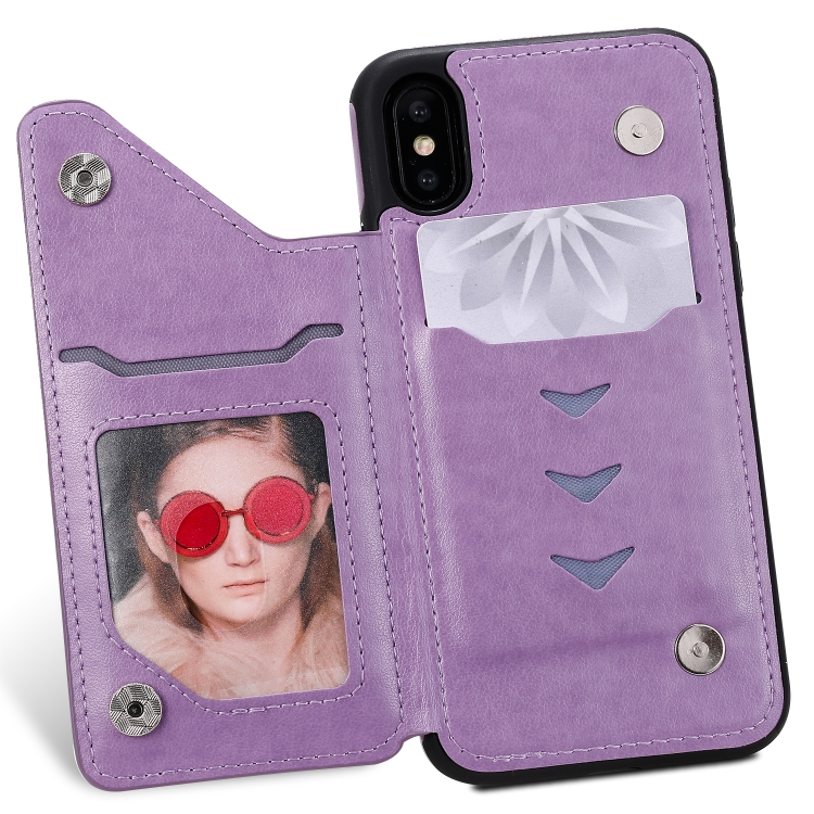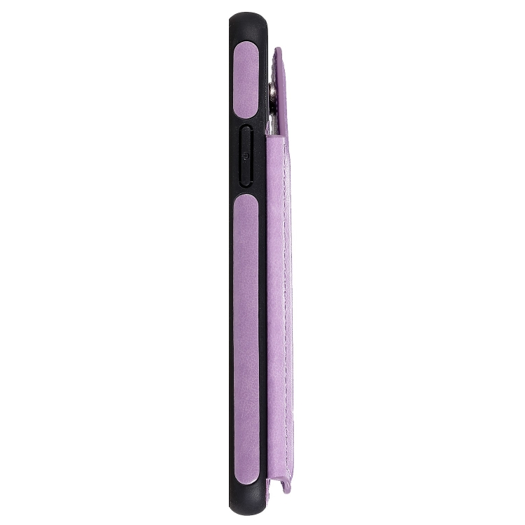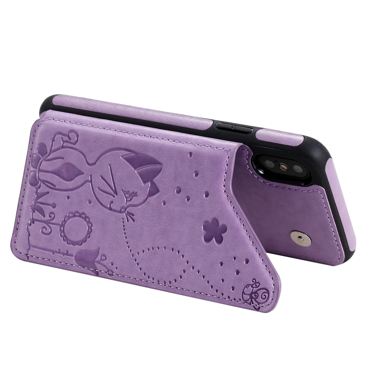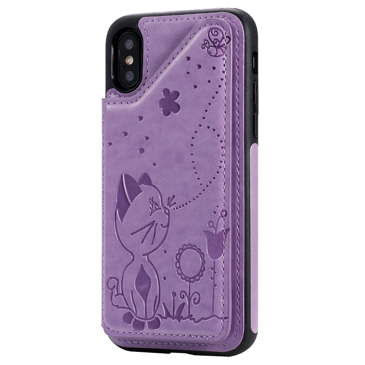 Estuche protector para iPhone Xs Cat Bee patrón en relieve a prueba de golpes con ranuras para tarjetas y marco de fotos (Púrpura)