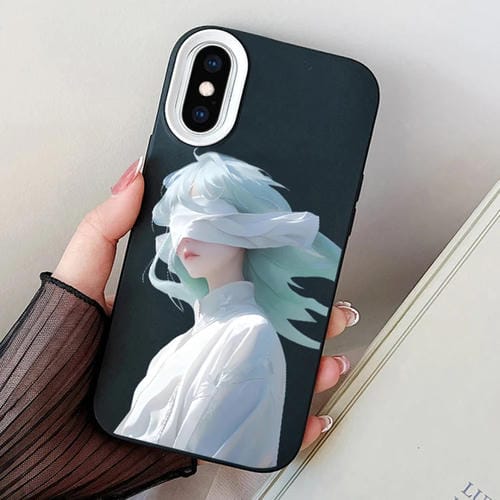 Estuche híbrido para iPhone Xs Max Blindfold Girl PC y TPU (Negro)